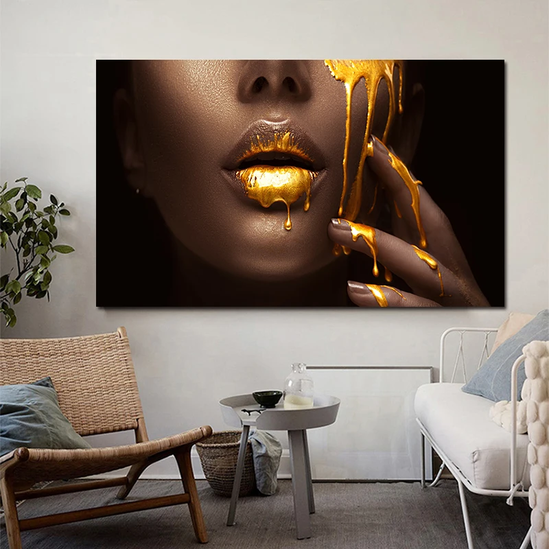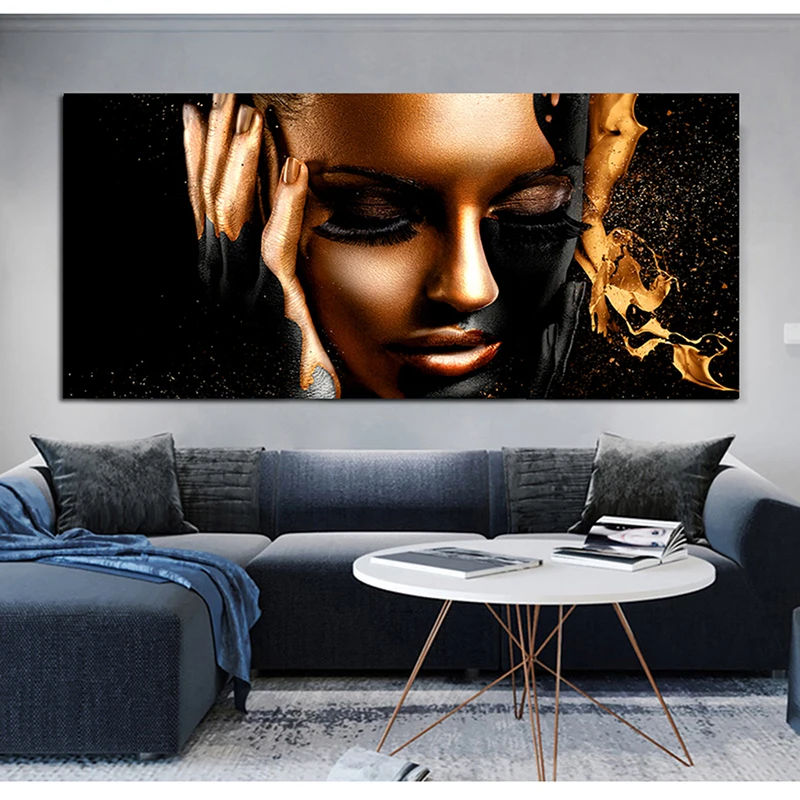 XINQI женское лицо с золотой жидкой холст картины 1 шт. большие настенные художественные картины для гостиной домашний декор плакаты принты