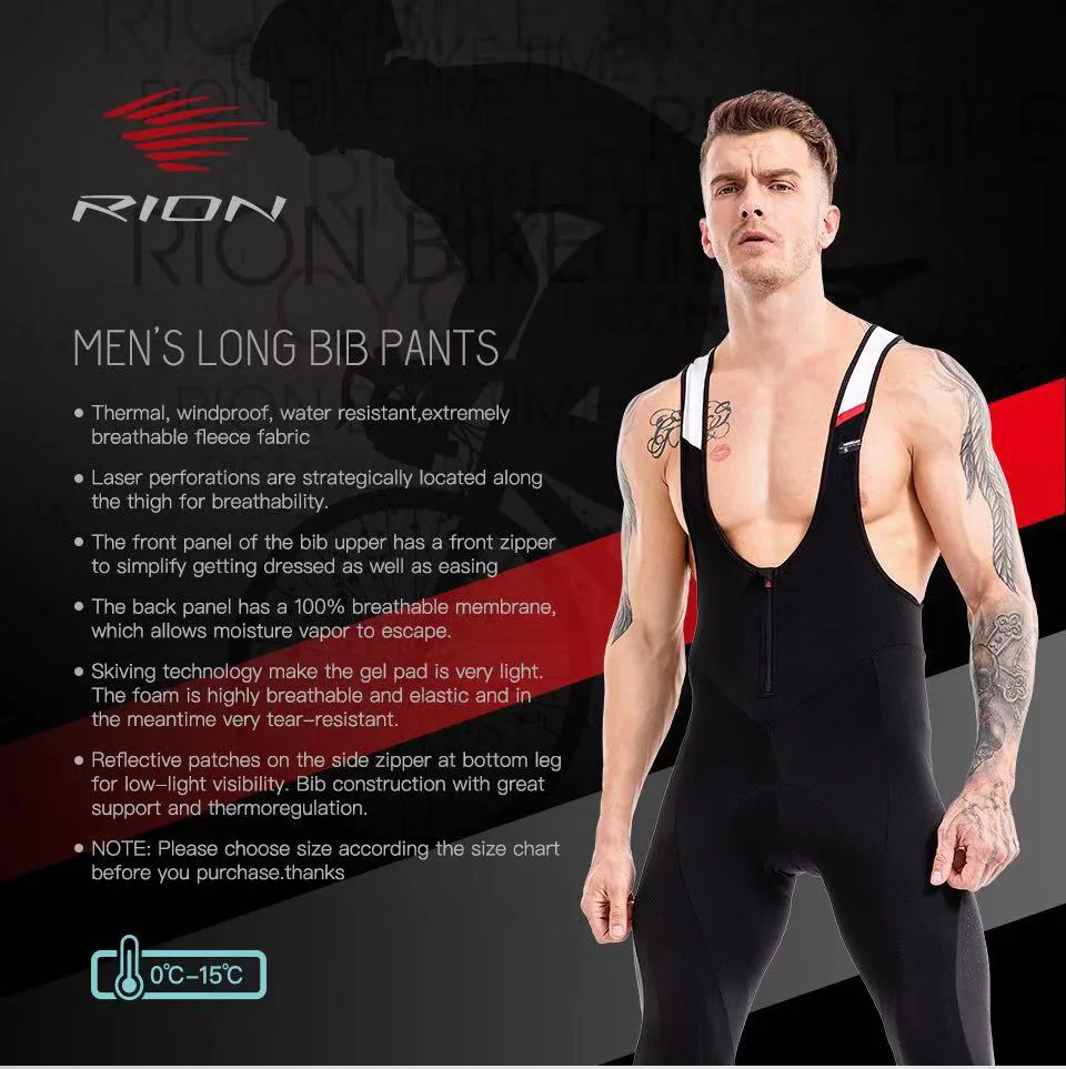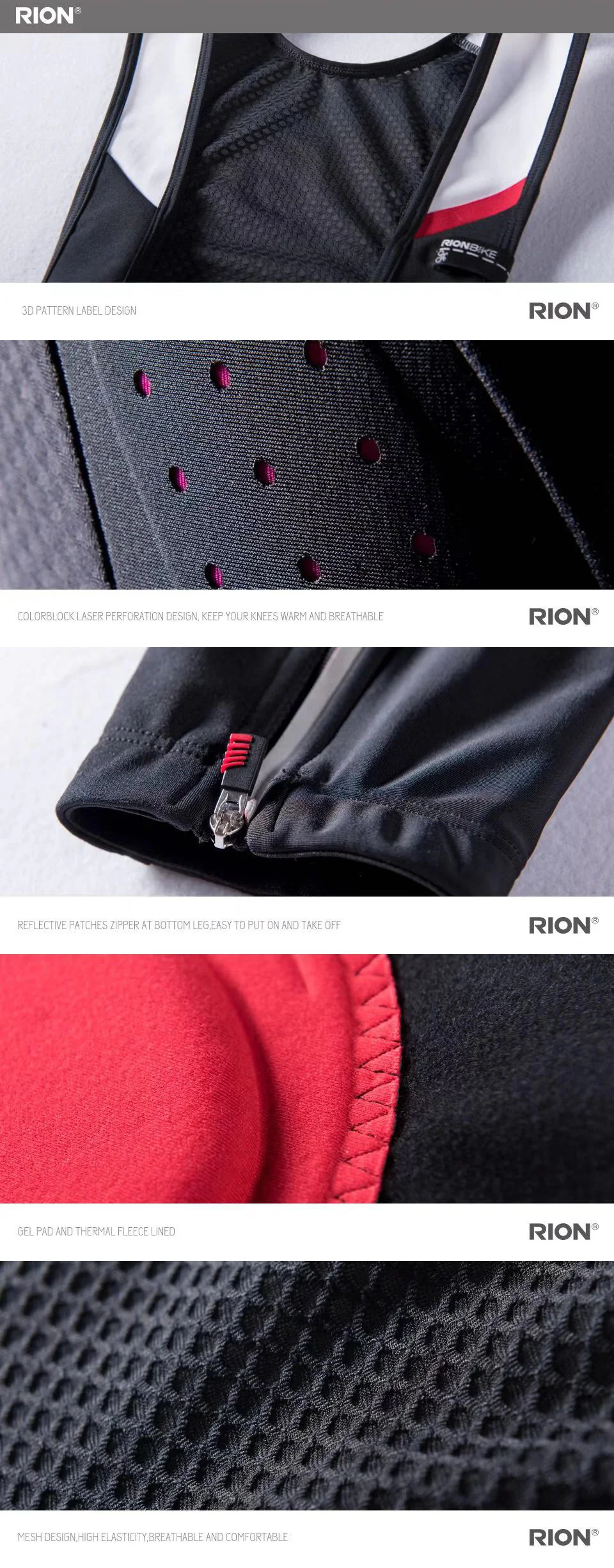 Мужские зимние Утепленные флисовые велосипедные брюки RION, велосипедные брюки на молнии для горного велосипеда, профессиональные велосипедные колготки с гелевой подкладкой, длинные брюки для горного велосипеда