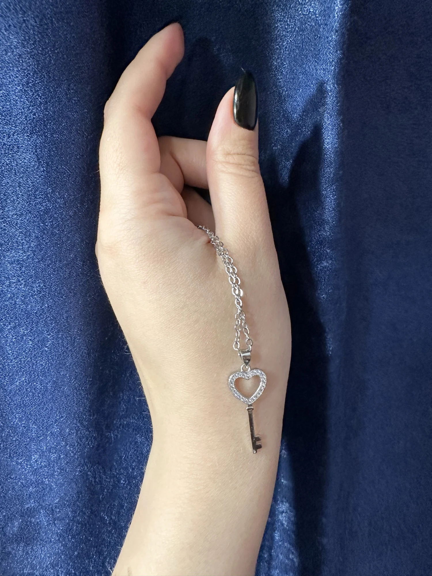 Серебряный цвет, модное ожерелье с подвеской в виде любовного сердца и ключа для женщин, кубический циркон, ювелирные изделия, подарки S-N74