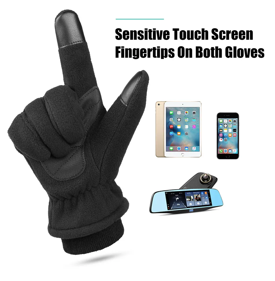 С сенсорным экраном совместимы с кончиками пальцевПроводящий материал на кончиках пальцев и указательных пальцев, удобно и чутко относится к вашему смартфону, настольному ПК, автомобильному бортовому компьютеру и другим устройствам с сенсорным экраном, не снимая перчатки, также приятно использовать в качестве перчаток для фотосъемки.