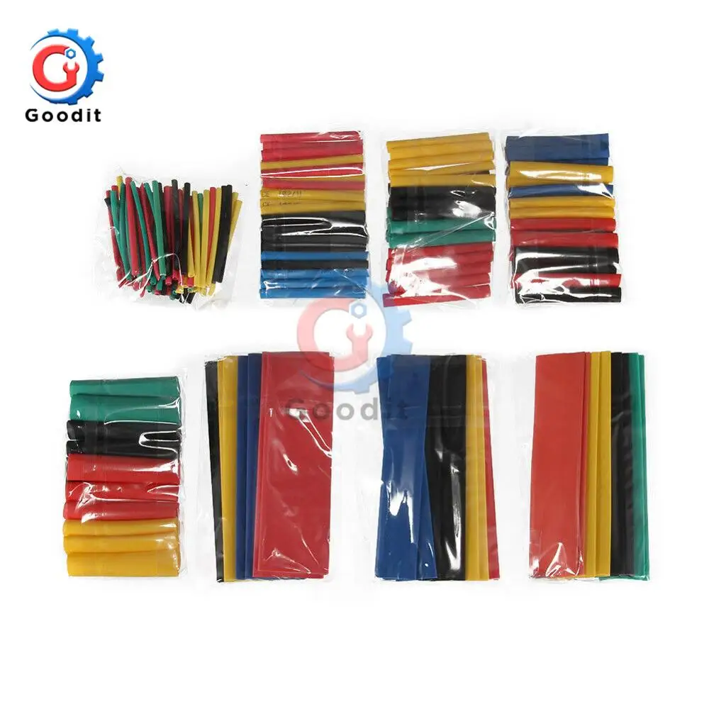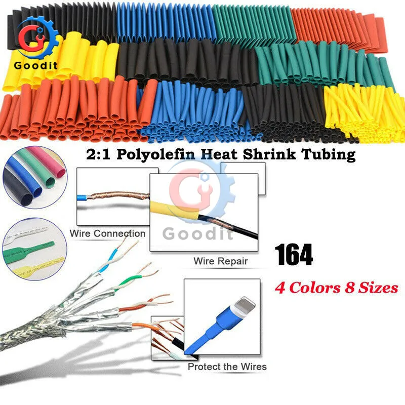 Термоусадочная трубка 164 шт.лот, Полиолефиновая термоусадочная трубка в ассортименте, изолированная трубка, комплект для проводов, 8 размеров, разноцветные