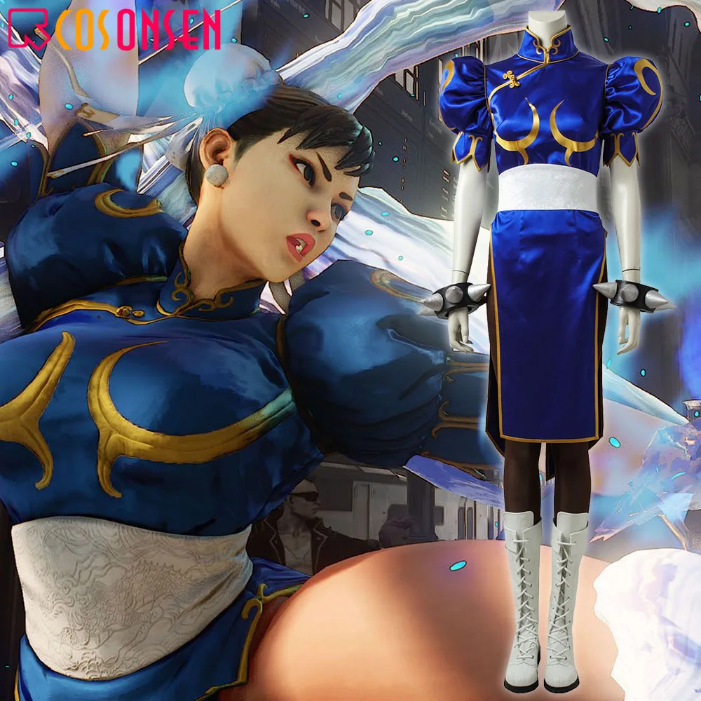 Костюм для косплея Чунь ли из файтингов, голубое платье Чонсам для взрослых, костюм для косплея ONSEN на заказ