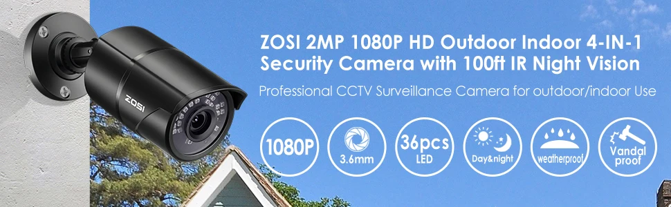Камера видеонаблюдения ZOSI, погодозащищенная, 1080P, CVBS, AHD, TVI, CVI, 2,0 МП