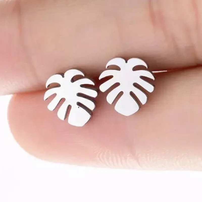 Женские серьги с листьями Monstera, серьги-гвоздики из нержавеющей ...