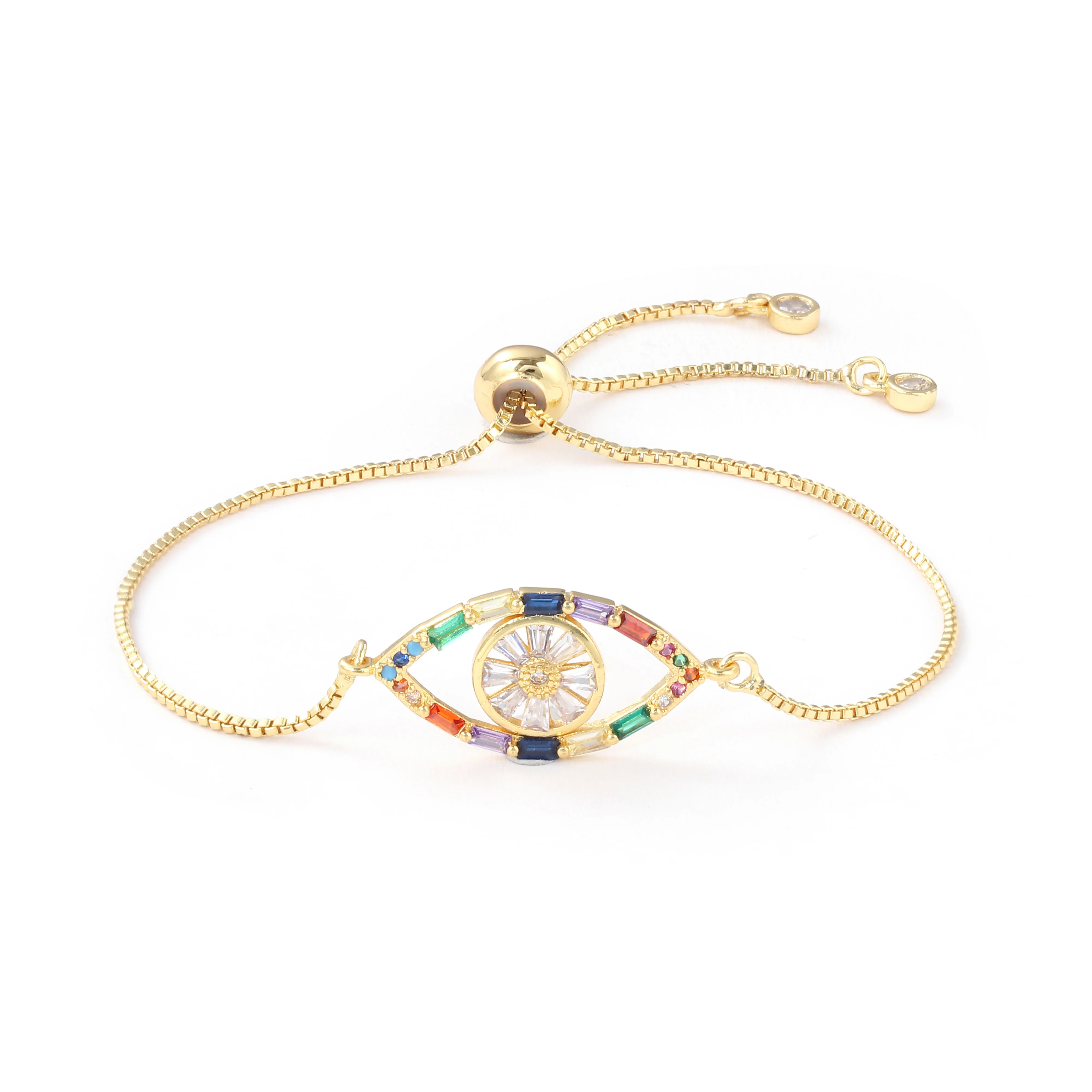 Элегантный женский браслет с радужным злом и индюками для глаз, ювелирные изделия, cz Циркон, браслет с цепочкой в виде змеи, регулируемый браслет-цепочка