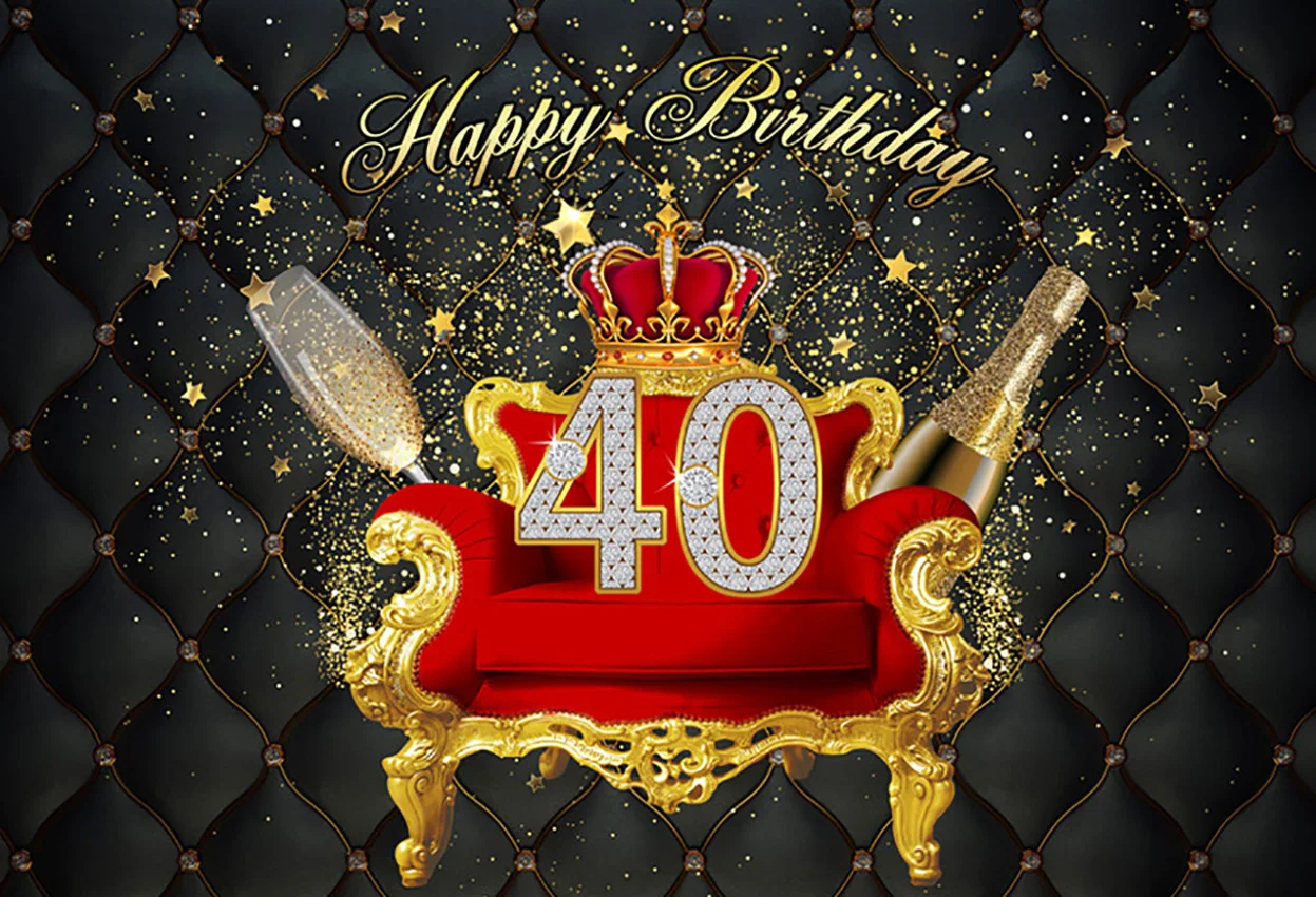 40 лет День рождения баннер для взрослых фотографический фон черные полосы годен блестящая корона празднование плакат