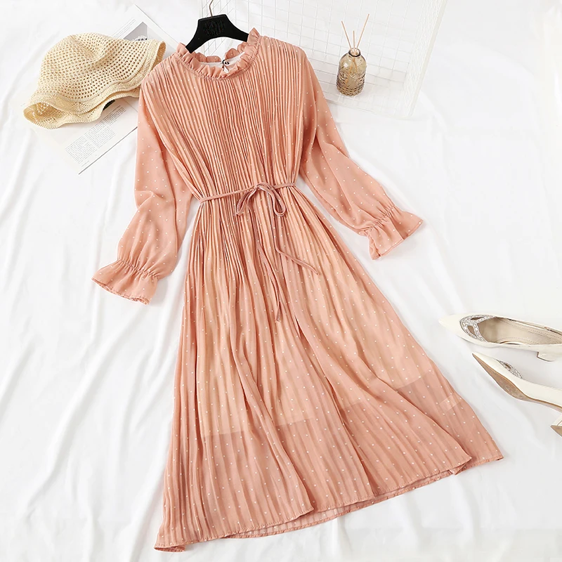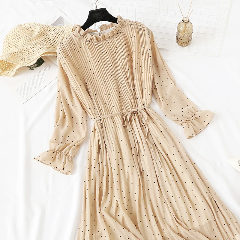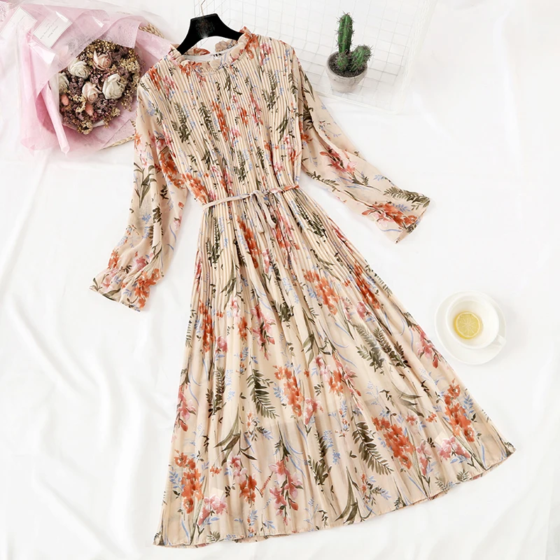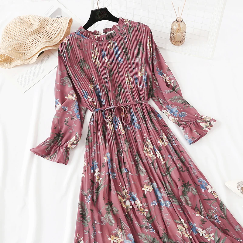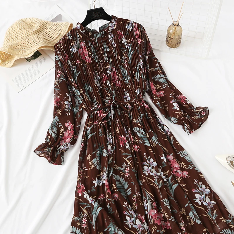 Женское длинное платье, винтажное шифоновое плиссированное платье с...