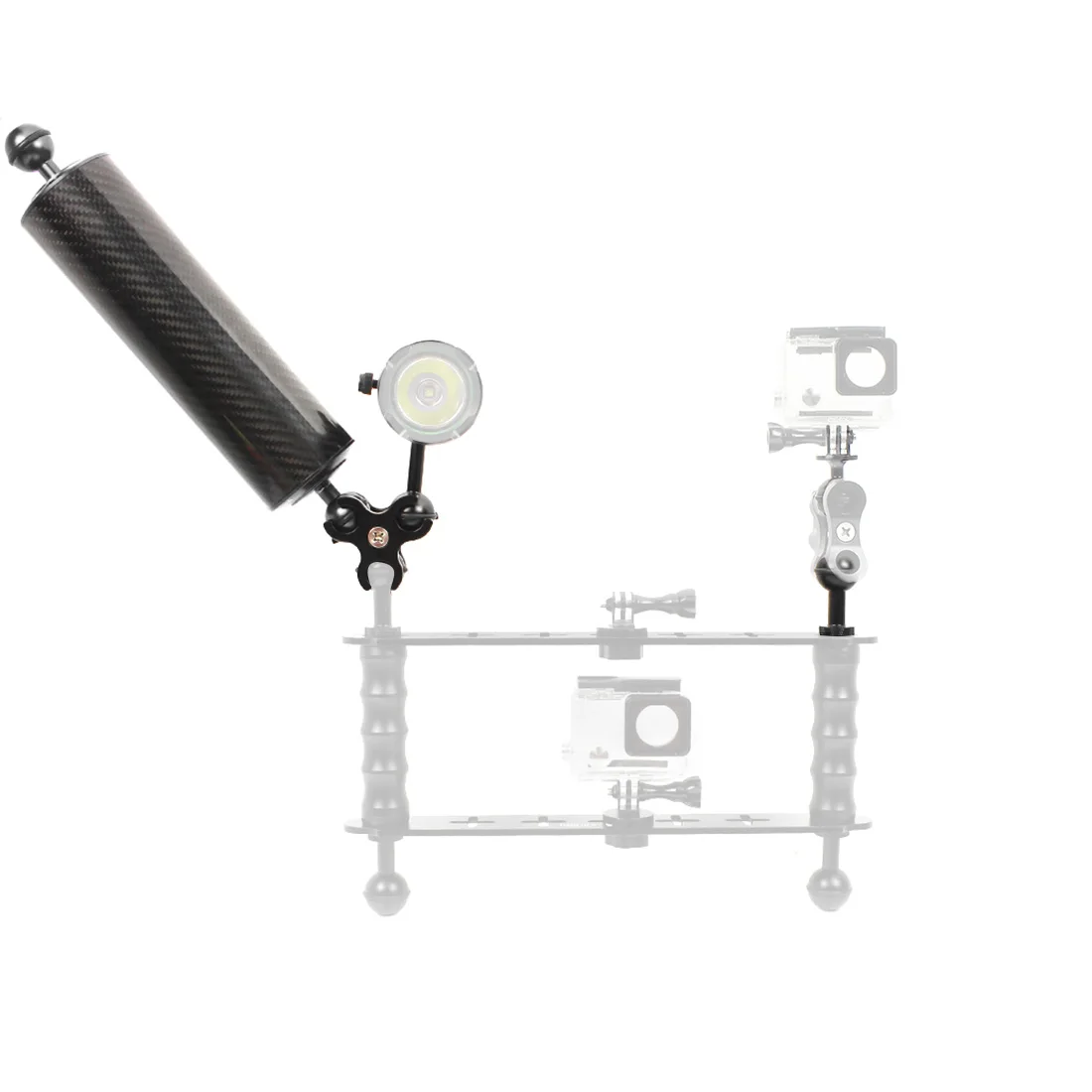Характеристики: Изготовлен из высококачественного углеродного волокна и алюминиевого материала, прочный в использовании. Супер светильник из углеродного волокна с двойной шариковой конструкцией, может поддерживать плавность руки. Этот поплавок предназначен как для макросъемки, так и для широкоугольной съемки. Легкий, очень прочный дизайн с двумя шариками. Идеально подходит для съемки фотографий с водными видами деятельности или дайвинга под водой 100 метров.