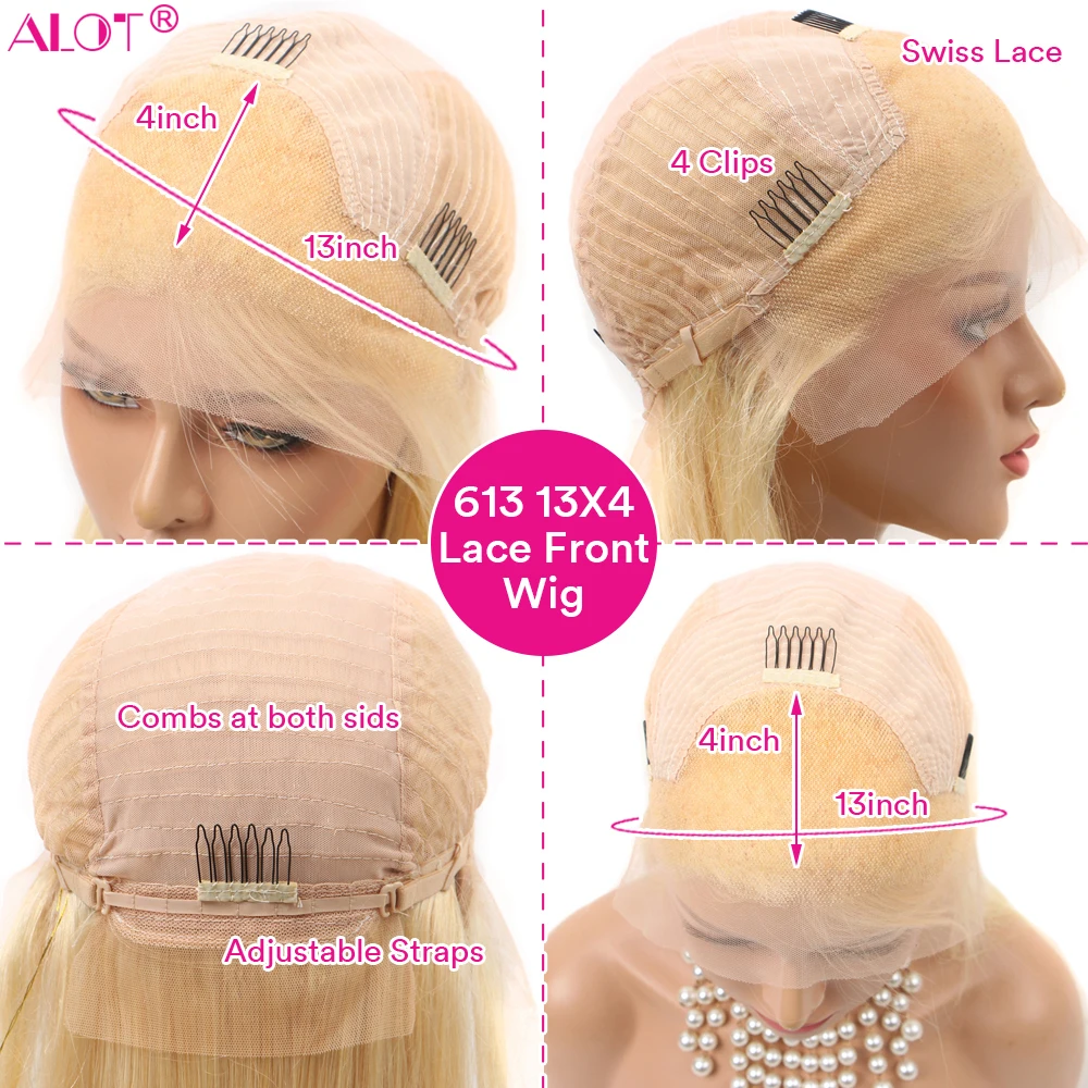 Парики из натуральных волос на сетке спереди, 42 дюйма, 613, 13x 4