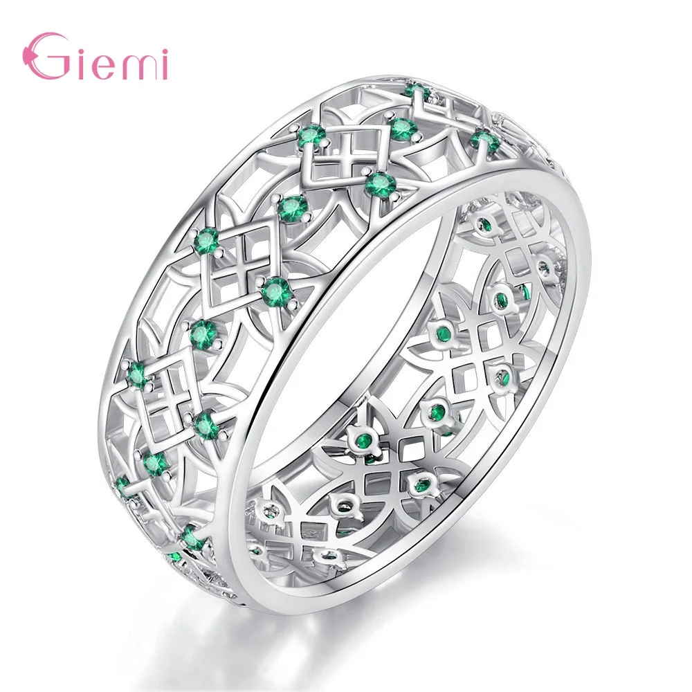 Горячая Распродажа, винтажные 925 пробы, серебряные Потрясающие кольца с кристаллами, красивые полые кольца с цветами для женщин, девушек, жены, модные ювелирные изделия