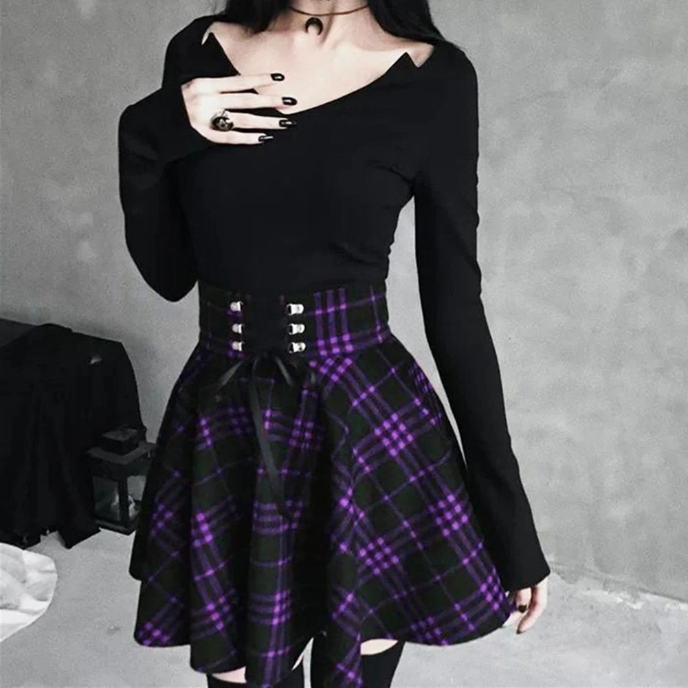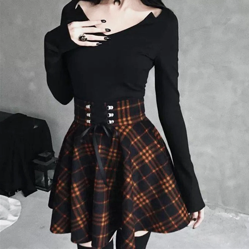 Юбка женская клетчатая в шотландскую клетку, винтажная Плиссированная, с завышенной талией, хлопковая, в клетку