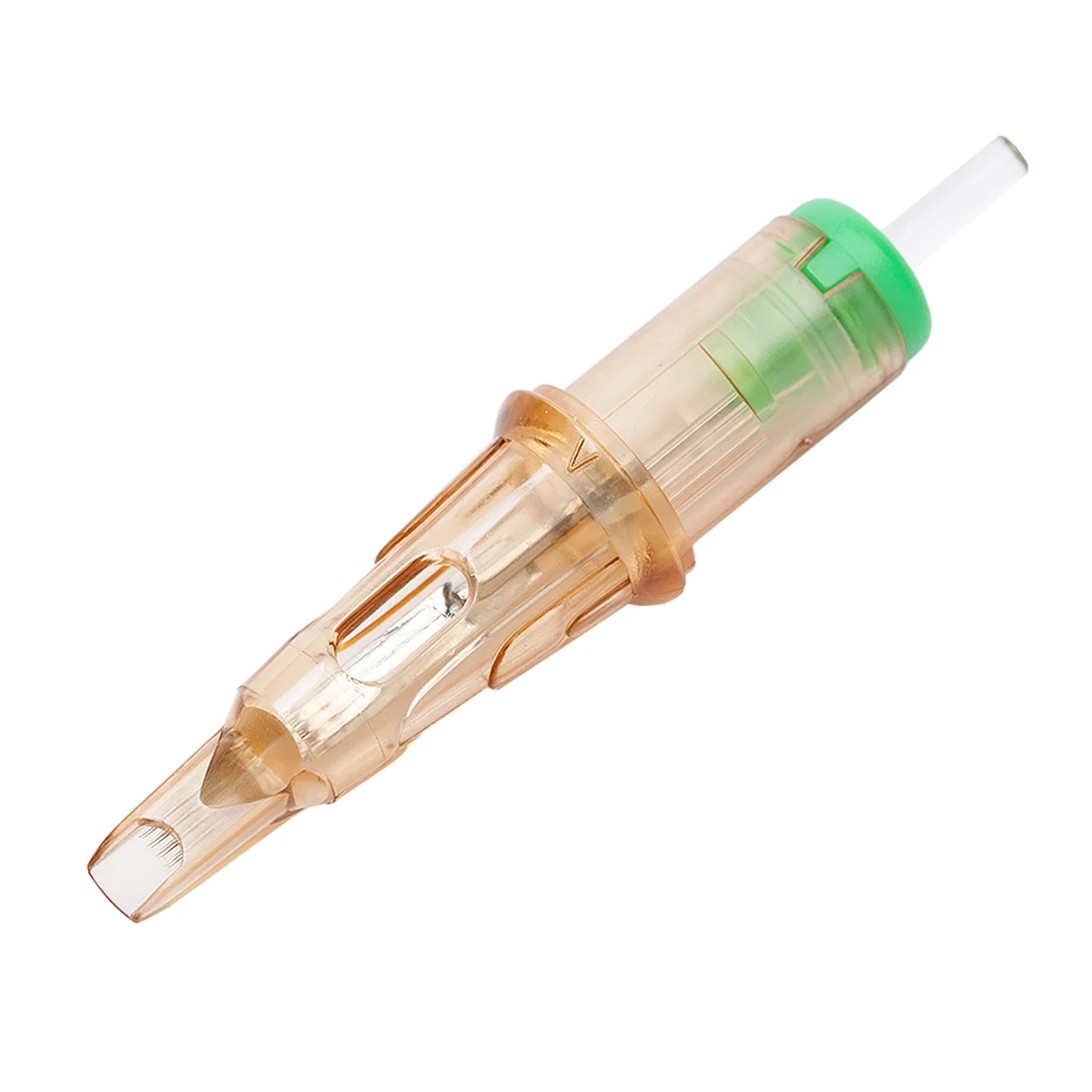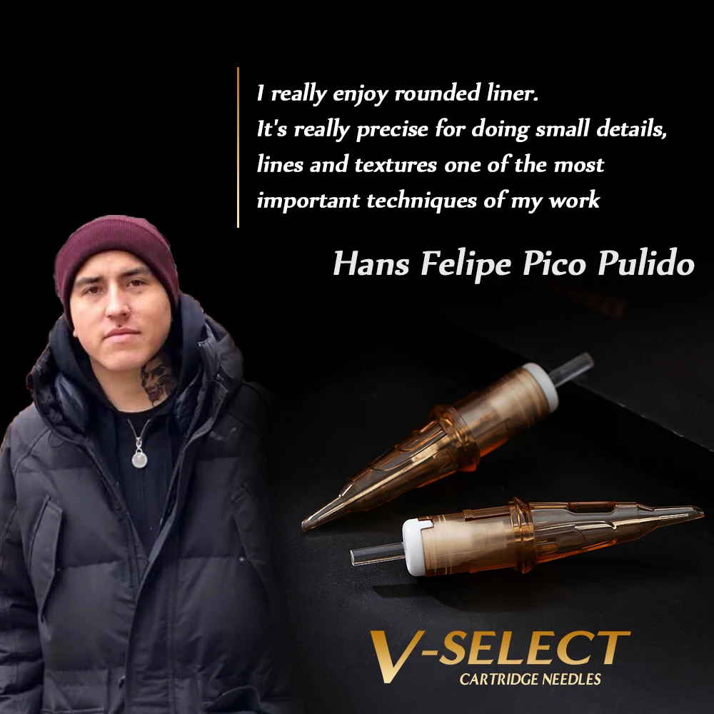 Оснащенные v-образной системой, картриджи с v-отбором оснащены системой точного позиционирования и эластичной мембраной для создания экстремальных характеристик татуировок