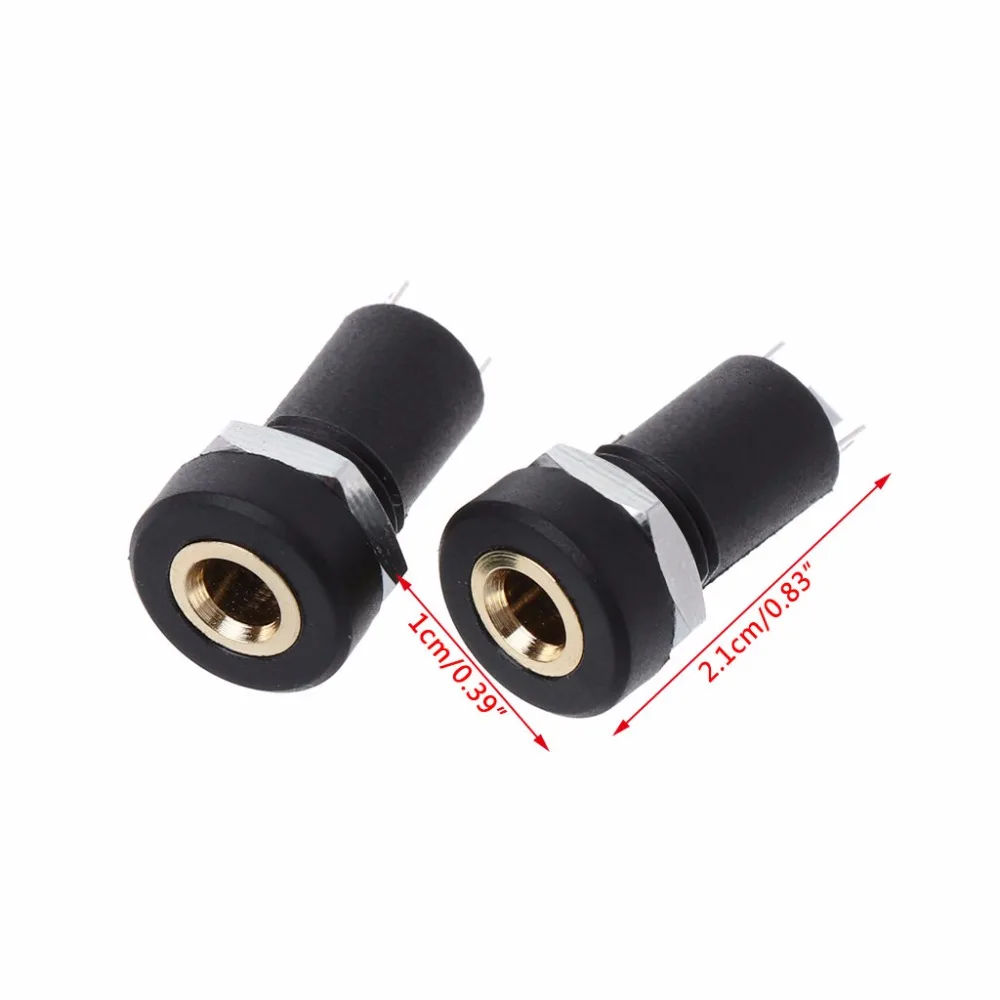 2 шт., аудиоразъем 3,5 мм, гнездо для 3-полюсного черного стерео припоя, Панельное крепление, золото с гайками, разъем