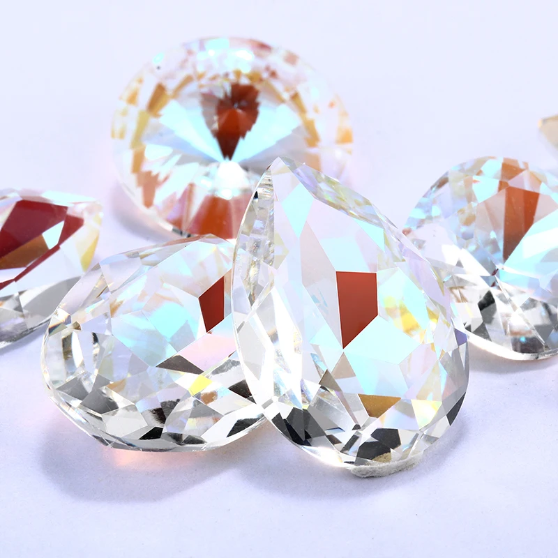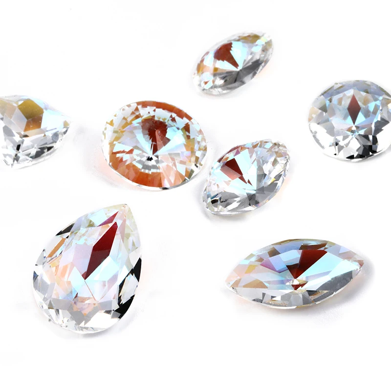 Прозрачные флуоресцентные каплевидные овальные Риволи, Треугольные Ювелирные изделия всех размеров, из стекла K9, стразы со стразами