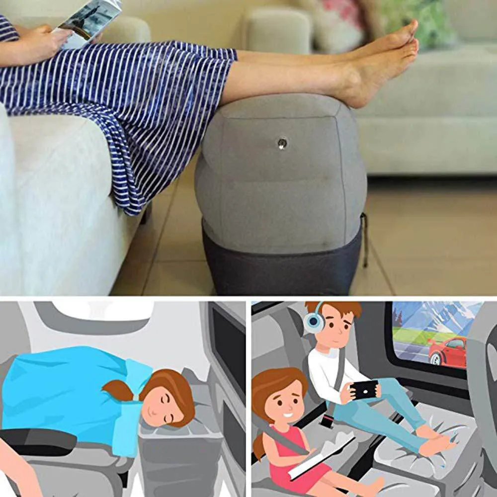 1 шт., автомобильный стиль, 3 слоя, надувная подставка для ног, надувная подушка для путешествий, ПВХ, Флокированная подставка для ног, расслабляющая подушка для автомобиля, поезда, дома, офиса