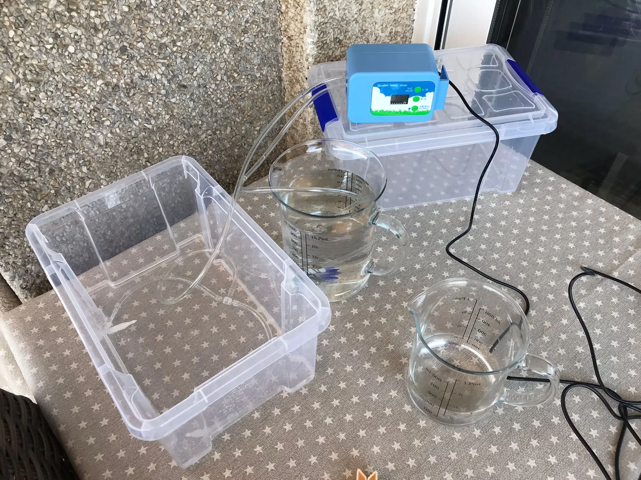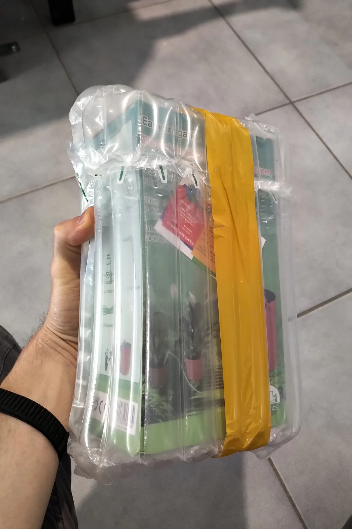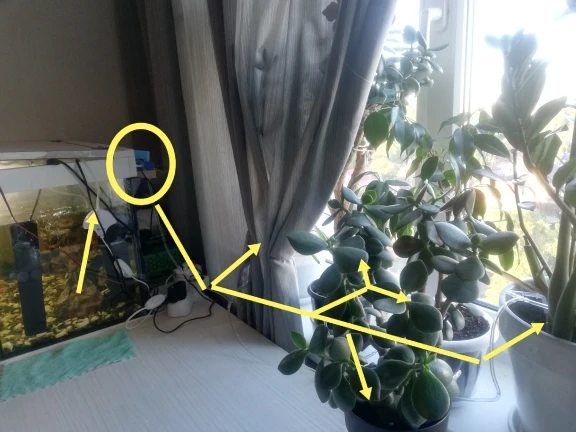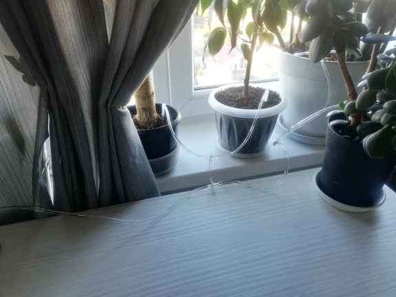 ОТЛИЧНАЯ ВЕЩЬ !!! Пришло за две недели на Урал! Доставка в пункт выдачи, забирала из постамата сбербанка. Упаковано хорошо, ничего не сломалось, коробка чуть помята, но содержимое осталось целым. Комплектация соответствует описанию: Насос (1шт), доп. крепление для насоса (1шт), фильтр на шланг для забора воды (1шт), разветвители (15шт), шланг (10м), капельный диффузор (15шт), usb кабель (1шт), инструкция (1шт). В подарок положили фум ленту (не пригодилась, все соединения надежные, разветвители не протекают. Работает очень хорошо! Напор сильный. Опытным путём подбиралась длина шлангов, количество диффузоров и время подачи воды для нужного полива. На пять 5 горшков (3шт ф20см, 1шт ф25см, 1шт ф30см) установлено 6 диффузоров (в самый большой 2шт,в остальные по одному). Длительность полива 50сек каждый день. Водой запитала от 120л аквариума - мои растения любят эту сбалансированную по питательным веществам воду. На фото торец аквариума, насос висит на задней стенке. РЕКОМЕНДУЮ !