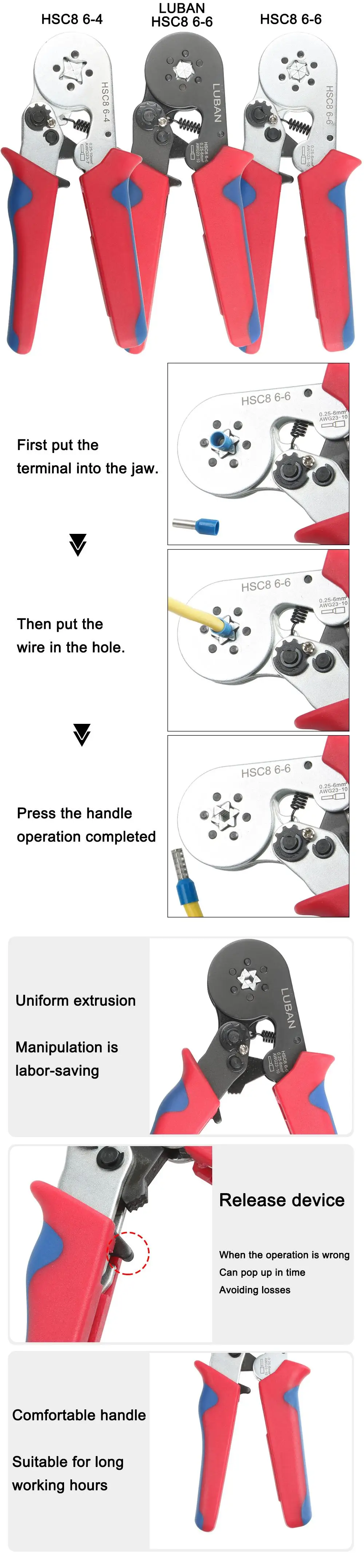 Саморегулирующиеся обжимные плоскогубцы HSC8 6-6B HSC8 6-6A, клеммы...