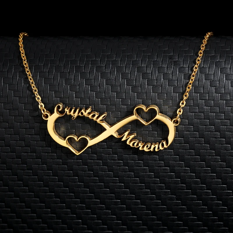 Индивидуальное ожерелье с именем бесконечности, двойное сердце, пер...