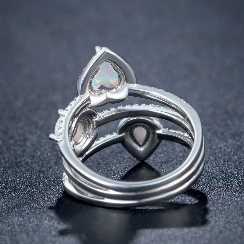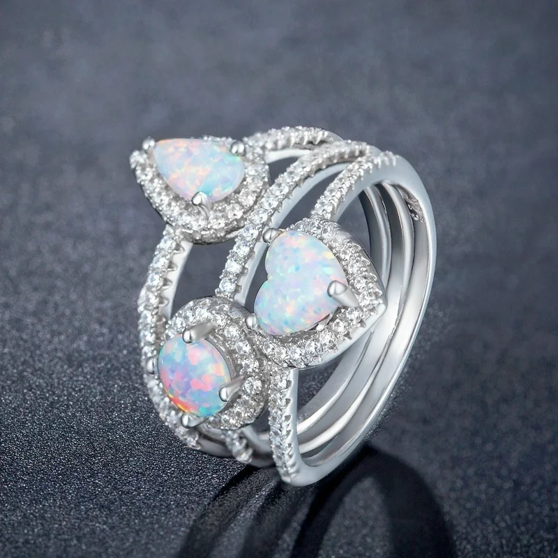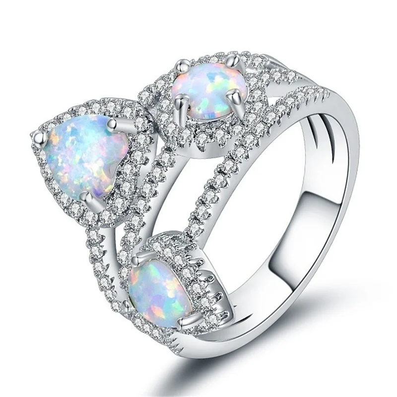Женское кольцо с кристаллом, в форме сердца, стразы, имитация белого огненного опала