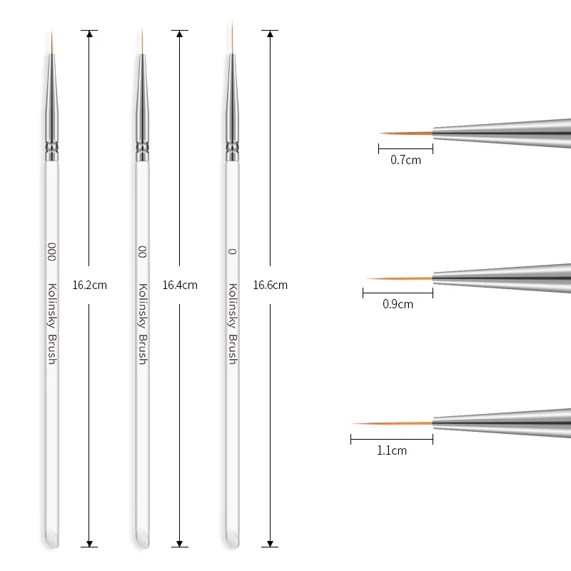 Количество: 3 шт./компл. Цвет: Прозрачный Щетинная кисть Длина: 0,7 см/0,9 см/1,1 см В общей сложности Длина: 16,2 см, 16,4 см, 16,6 см Посылка содержание: 3 шт. набор кистей для ногтей Создание красивых ногтей для долговечных блестящих ногтей! Для рисования линий, тонких деталей, цветов и т. д. Простота в управлении и эксплуатации. Подходит для маникюрного салона или «сделай сам».
