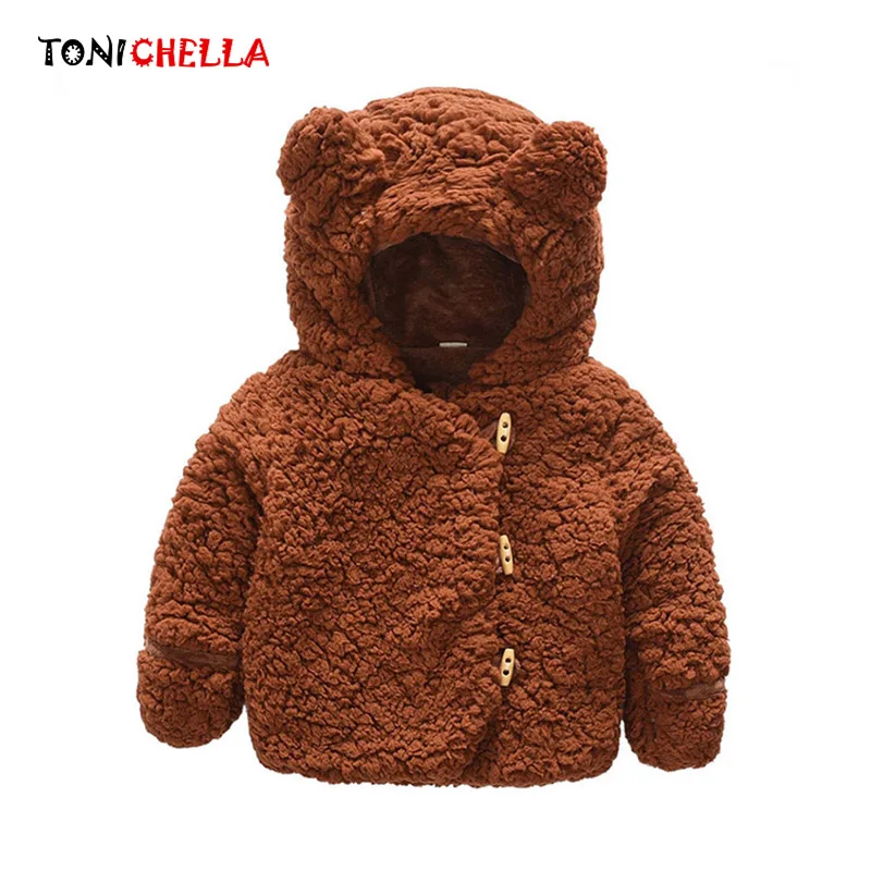 Зимняя Детская куртка с капюшоном с милым медведем, утепленные пальто для мальчиков и девочек, осенняя верхняя одежда, детская теплая одежда, полиэстер, пальто для новорожденных CL5708