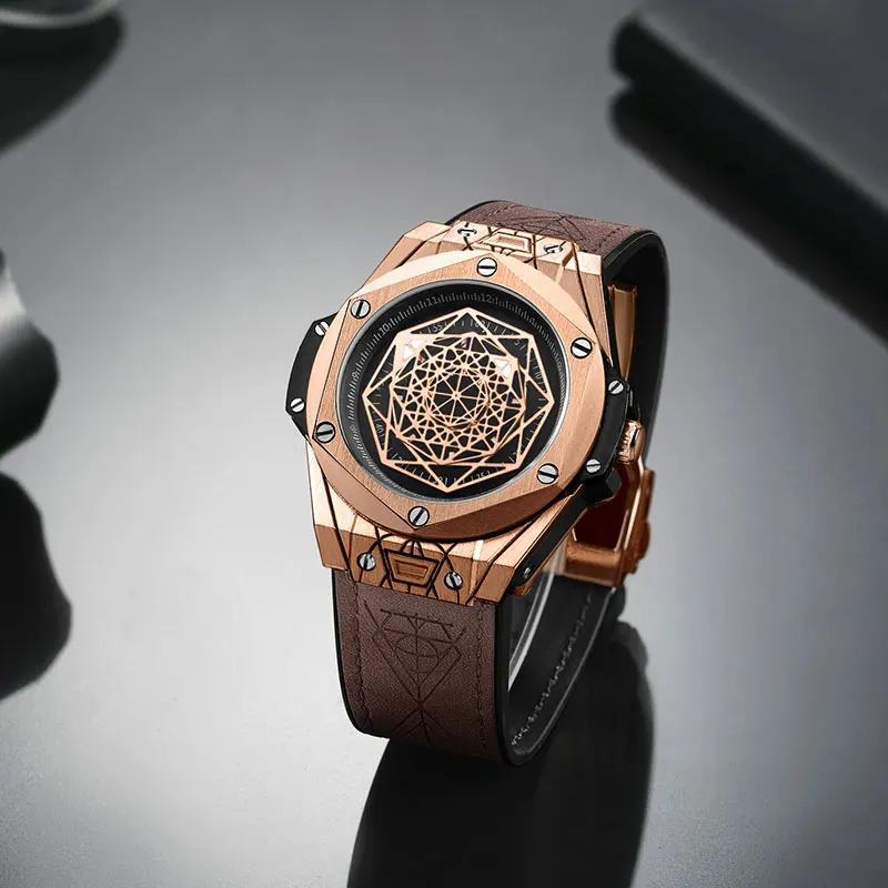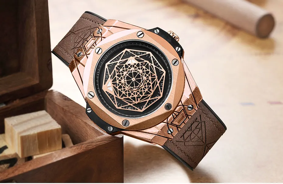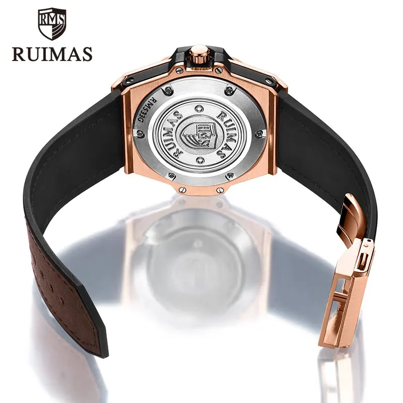 Часы мужские RUIMAS кварцевые спортивные, Брендовые повседневные водонепроницаемые Модные в стиле милитари, с кожаным ремешком и хронографом
