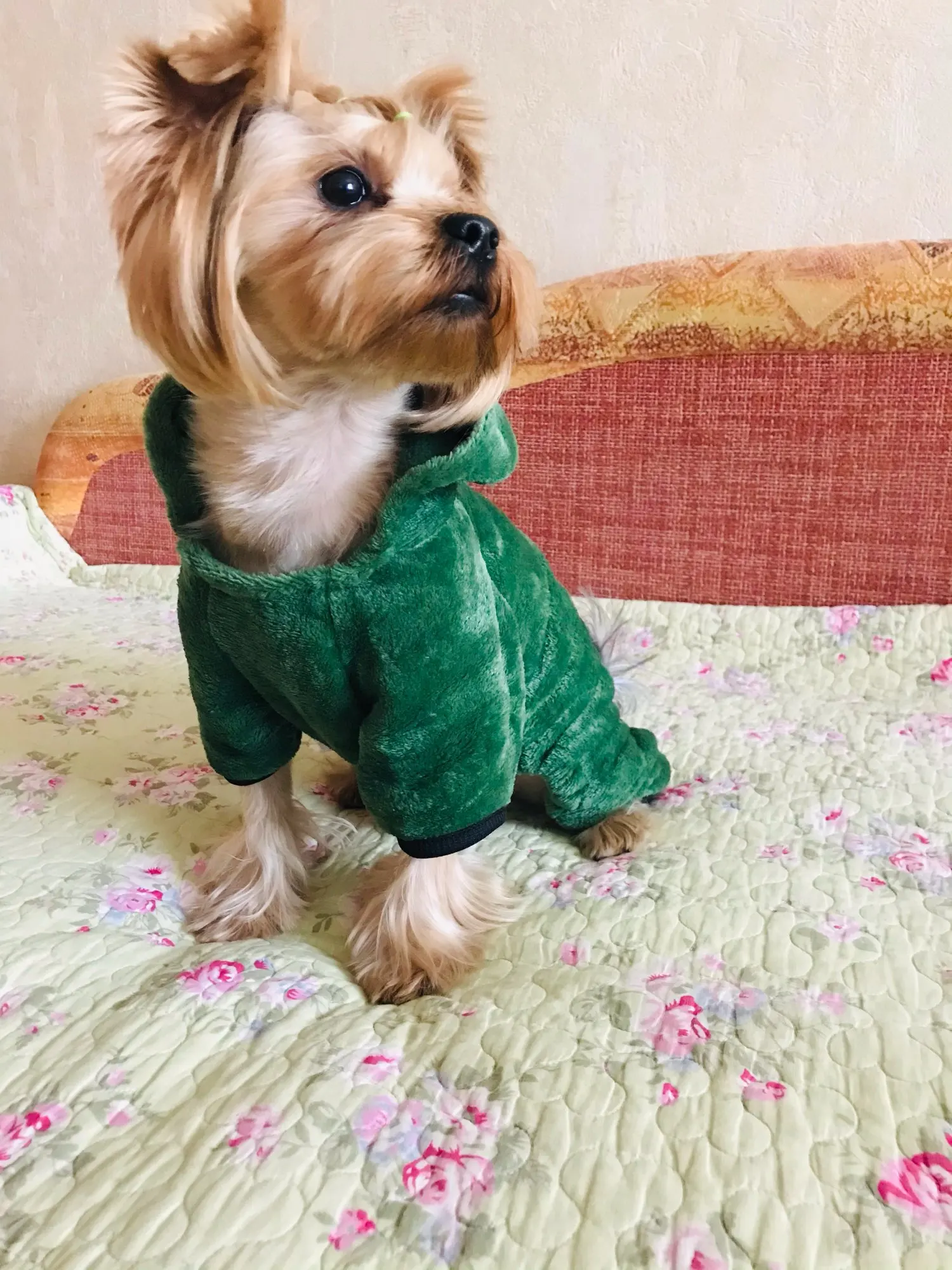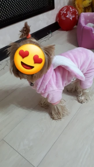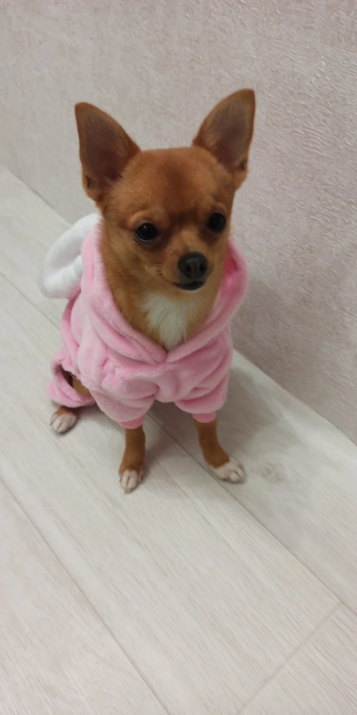 Моя собака весит меньше 2 кг, и комбинезон идеально подходит. Он очень красивый и мягкий. Абсолютная Рекомендуемая покупка.
