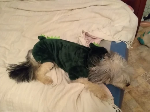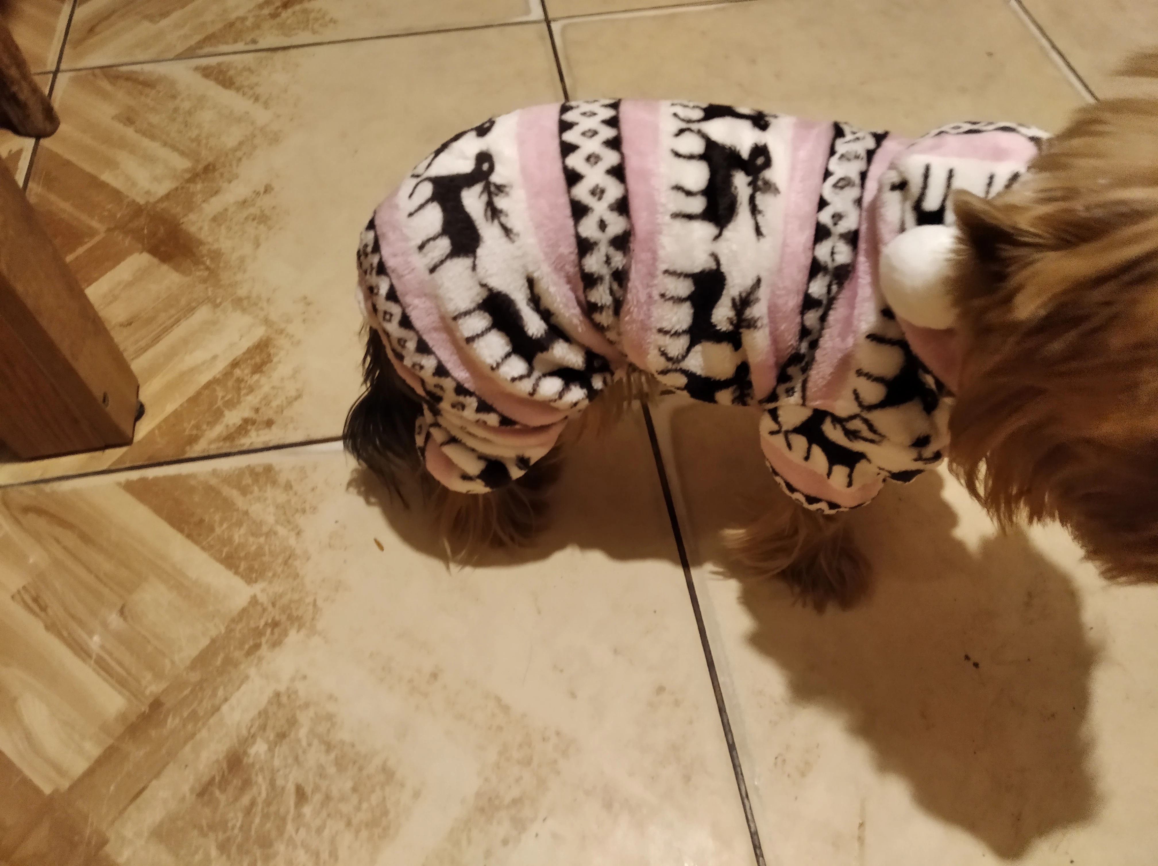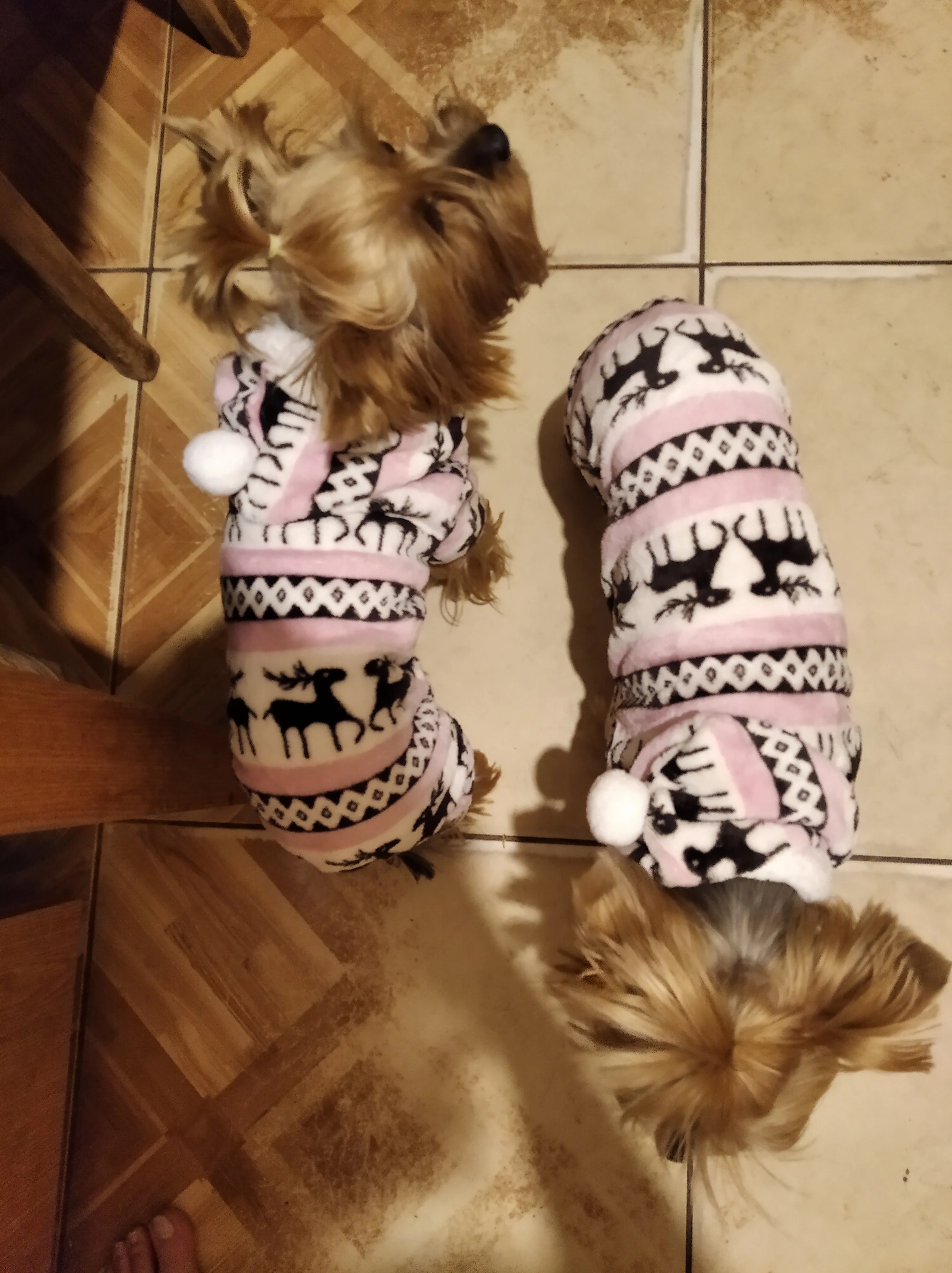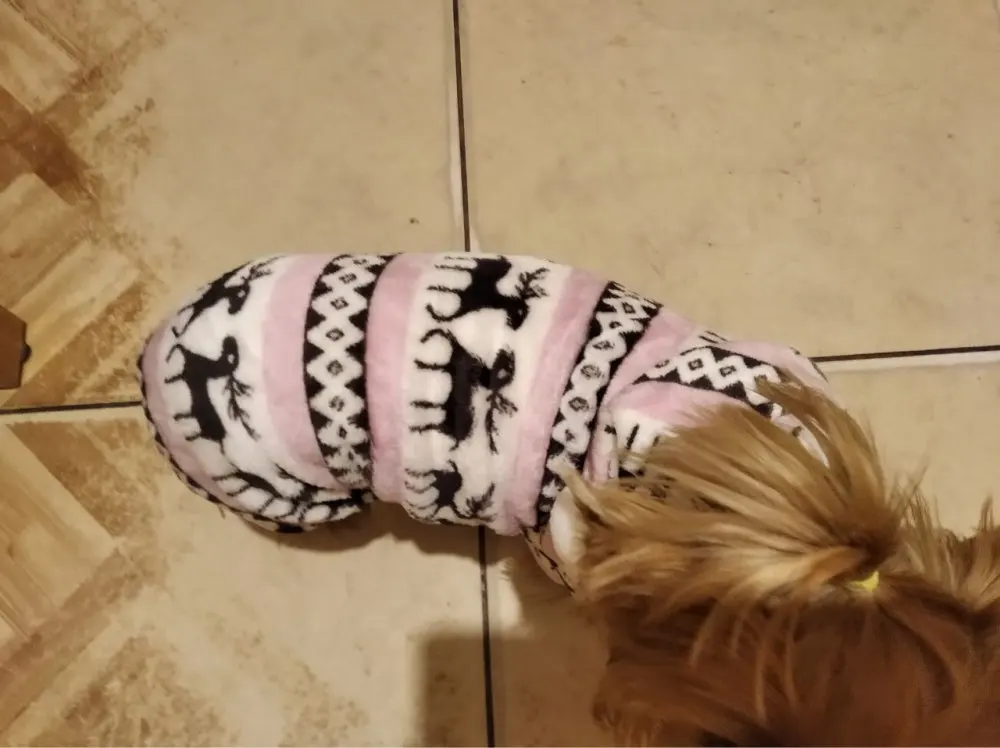 Йоркам 3 кг чуть великовато. Пижамка с оленями без кнопок