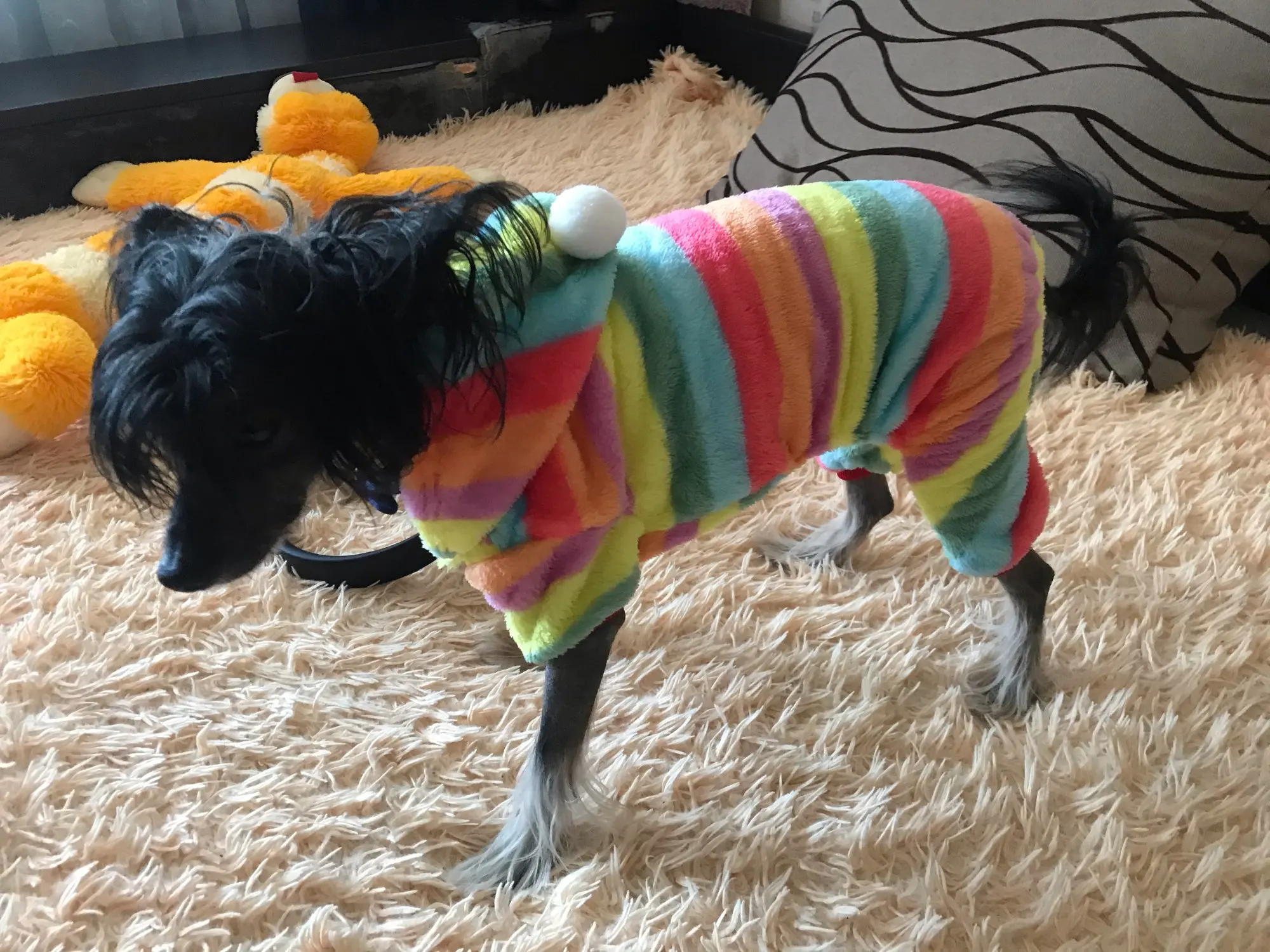 Всем доброго времени суток! Заказ был сделан 27.11.20 а 14.12.20 был уже получен в Харькове (Украина )! Быстрая доставка!!! Комбинезон мягкий, классный! На Китайскую хохлатую по спинке длинной 34 см прошел идеально, немного широковат, но поправимо. Продавца и товар могу рекомендовать полностью.