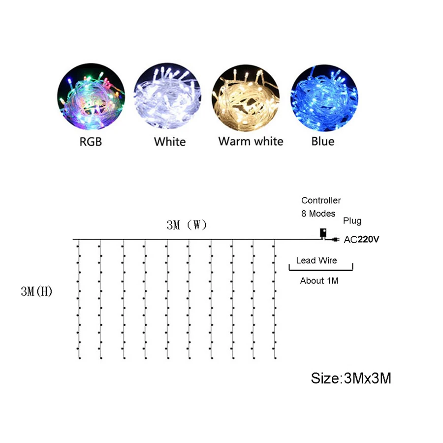 Характеристики:Наименование товара: светодиодная гирлянда для занавесок с водопадомРазмер: (Ш x В) 3x3 мСветодиодный индикатор: 320 излучателейКоличество подвесных линий: 10 линийСветодиодный Цвет: разноцветный/теплый белый/синийНапряжение: штепсельная вилка европейского стандарта 220 ВРазъем: ДаВодонепроницаемость: ДаПриведенный в действие: 8-режим контроллер (все указанные аккумуляторы входят в комплект поставки)Материал: пластик + медная проволока + светодиодный светильникТвердость: H.R.C. 50-52Цвет кабеля: прозрачный белый Ключевые особенности:Простота установки на большинство поверхностей: стекло, дерево, металл и пластикВысокое качество и длительный срок службы для внутреннего и наружного использованияНизкое энергопотребление с яркими цветамиЭнергоэффективный, практически без обслуживанияПодключи и работай, прост в эксплуатацииИдеально подходит для рождественского окна, вечерние, день рождения, свадьбы, праздничного освещения и т. д.