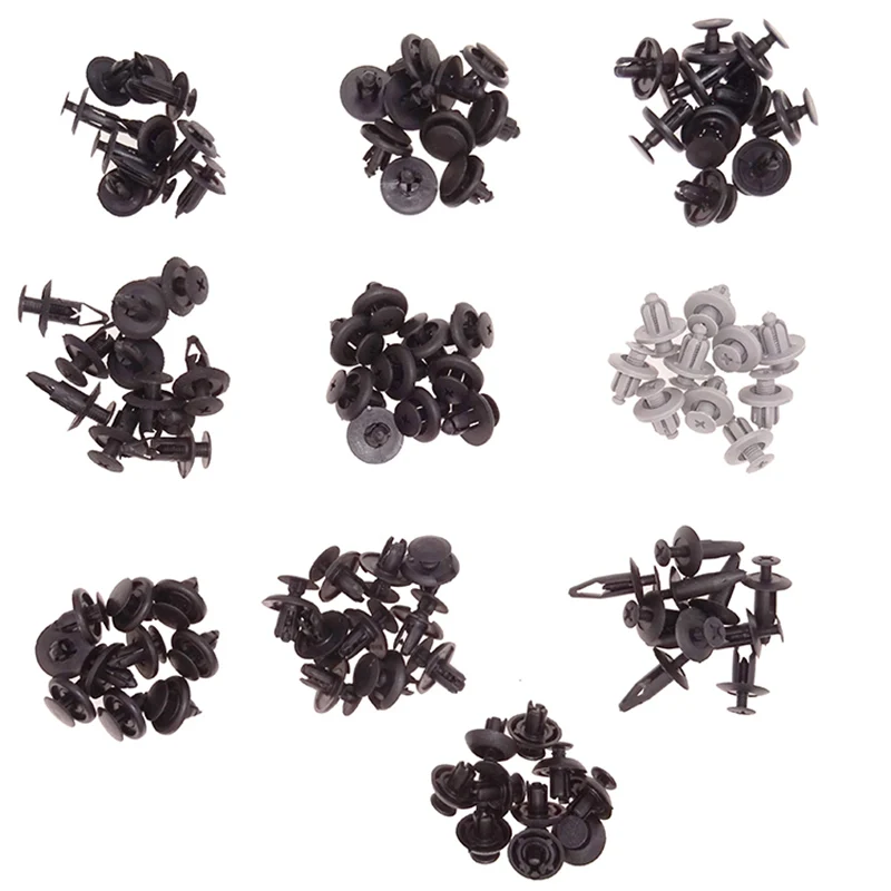 100 шт.компл. черный смешанный пластиковый крепеж винтовые заклепки зажимы комплект высокого качества для автомобильного бампера крыла заклепки зажимы