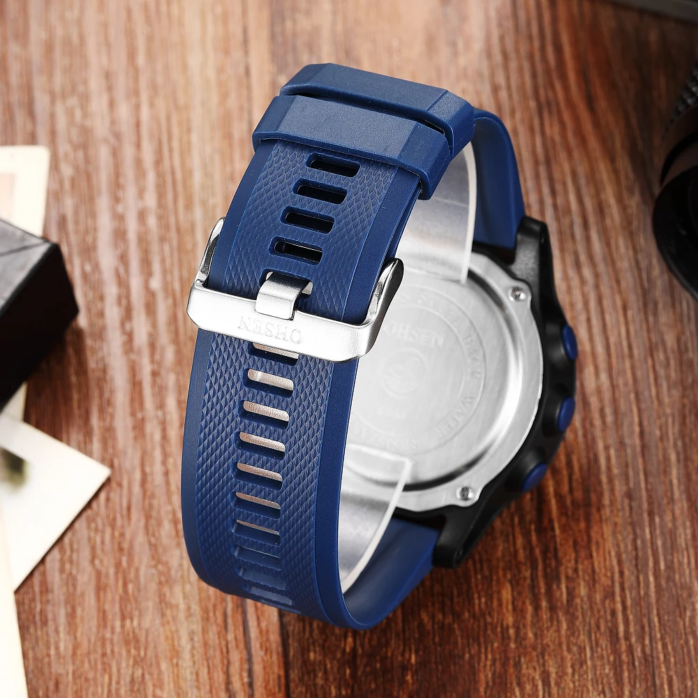 Япония Maxell кнопочная ячейка, длительный срок службыЗадняя крышка из нержавеющей стали с лазерным логотипом OHSENКачественный резиновый ремешок, более удобныйПряжка из нержавеющей стали