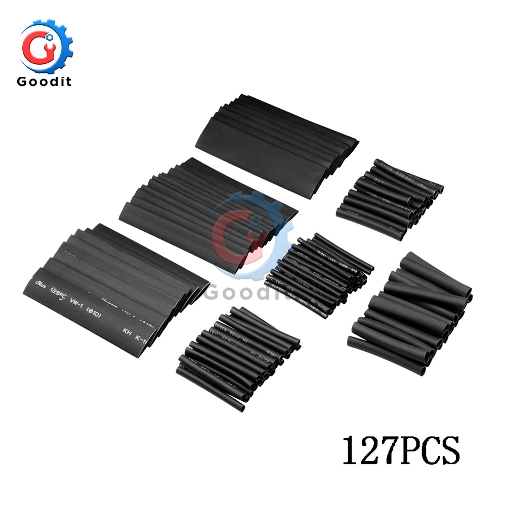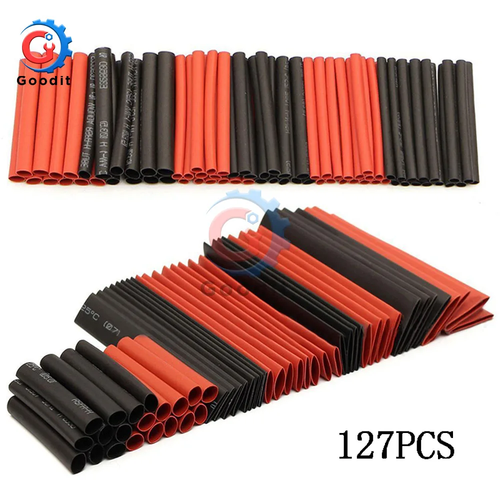 127 шт полиолефиновые термоусадочные трубки черный (красный черный)