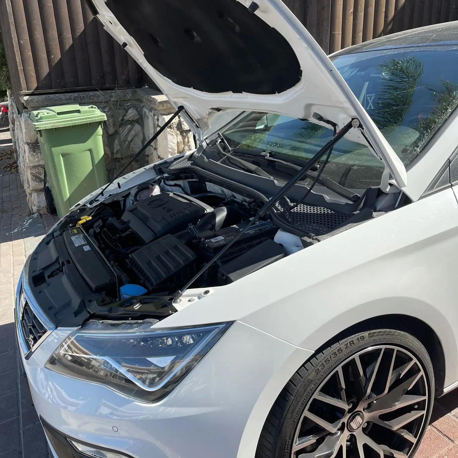 Очень точное описание и быстрая доставка, 2 недели в Румынию. Очень хорошо упаковано, инструкции по установке включены! Идеально подходит, подключи и работай на Leon Cupra 280. Скобы поставляются в черном цвете, окрашенные в белый цвет, чтобы соответствовать белому цвету под капюшоном. Газовые стойки не самые сильные, но они работают просто хорошо, они такие же мощные, как одна оригинальная газовая стойка для автомобиля VW/Audi на гольф или A3.