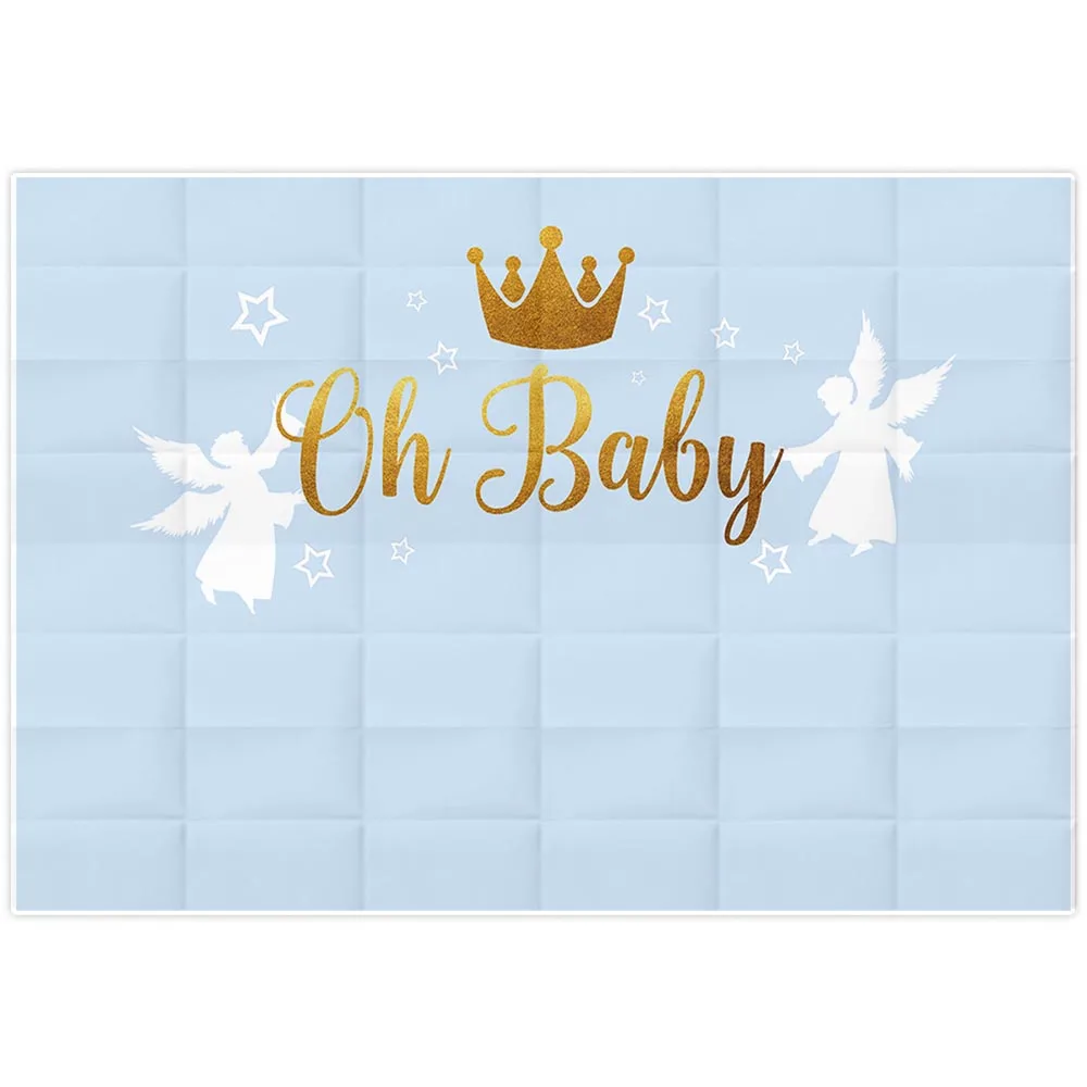 Фон для фотосъемки Allenjoy Oh Baby Shower с ангелом голубой розовый Золотой Серебряный день рождения Крещение Корона Фотофон