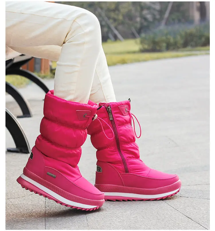 Водонепроницаемые женские ботинки, зимние ботинки до середины икры ...