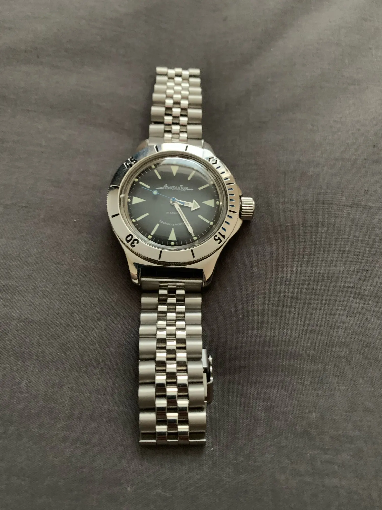 Хорошее обслуживание и хорошо сделанный продукт по разумной цене. Браслет с красивой отделкой в комплекте с пружинными прутьями, инструментом для пружинных прутков и инструментом для регулировки браслетов. Отличное качество. Я доволен. Спасибо! Полностью рекомендовано.