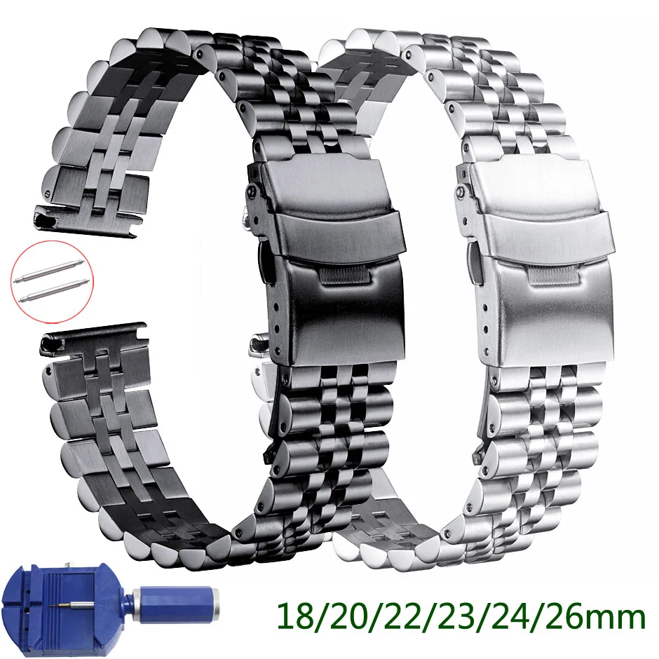 Ремешок для часов из нержавеющей стали, Шелковый глянцевый сменный Браслет для наручных часов, 18 мм 19 мм 20 мм 21 22 мм 23 24 мм 26 мм 28 30 мм