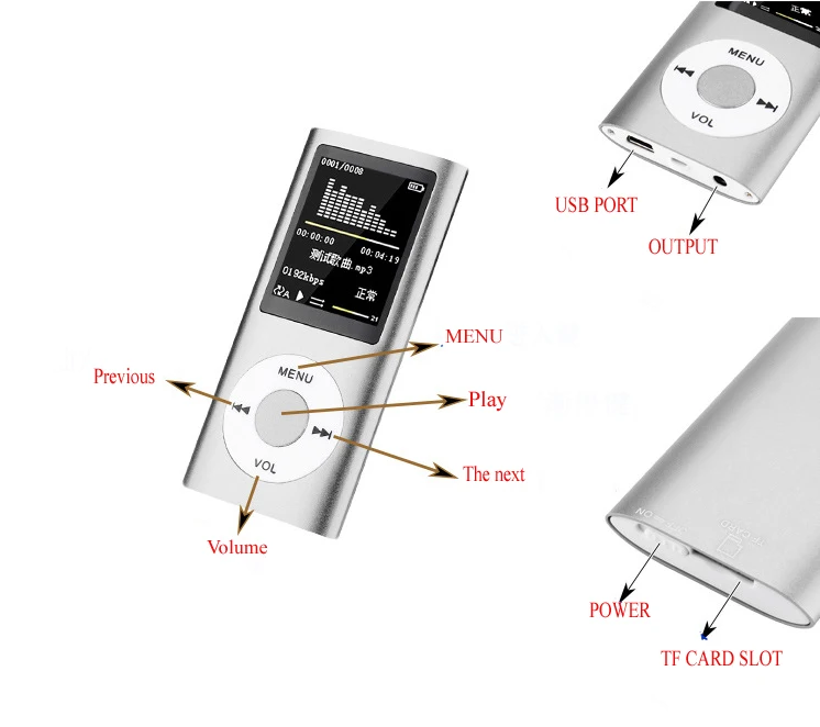 1. Время воспроизведения музыки 30 часов 2. С разъемом TF Crad (максимальная поддержка карты TF 32G) 3.Поддержка mp3, а также формата wma, wmv, asf, wav, mtv и amv с использованием бесплатного конверсионного программного обеспечения