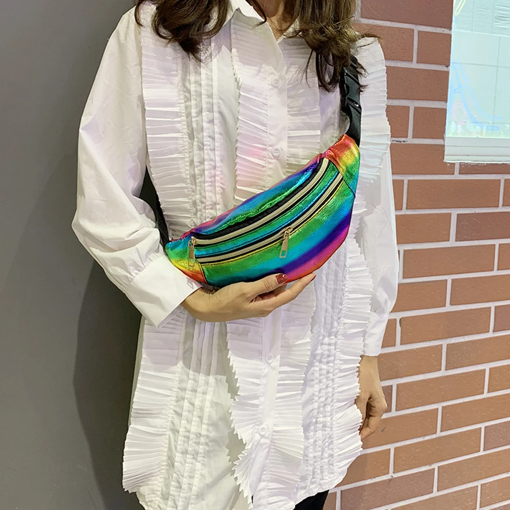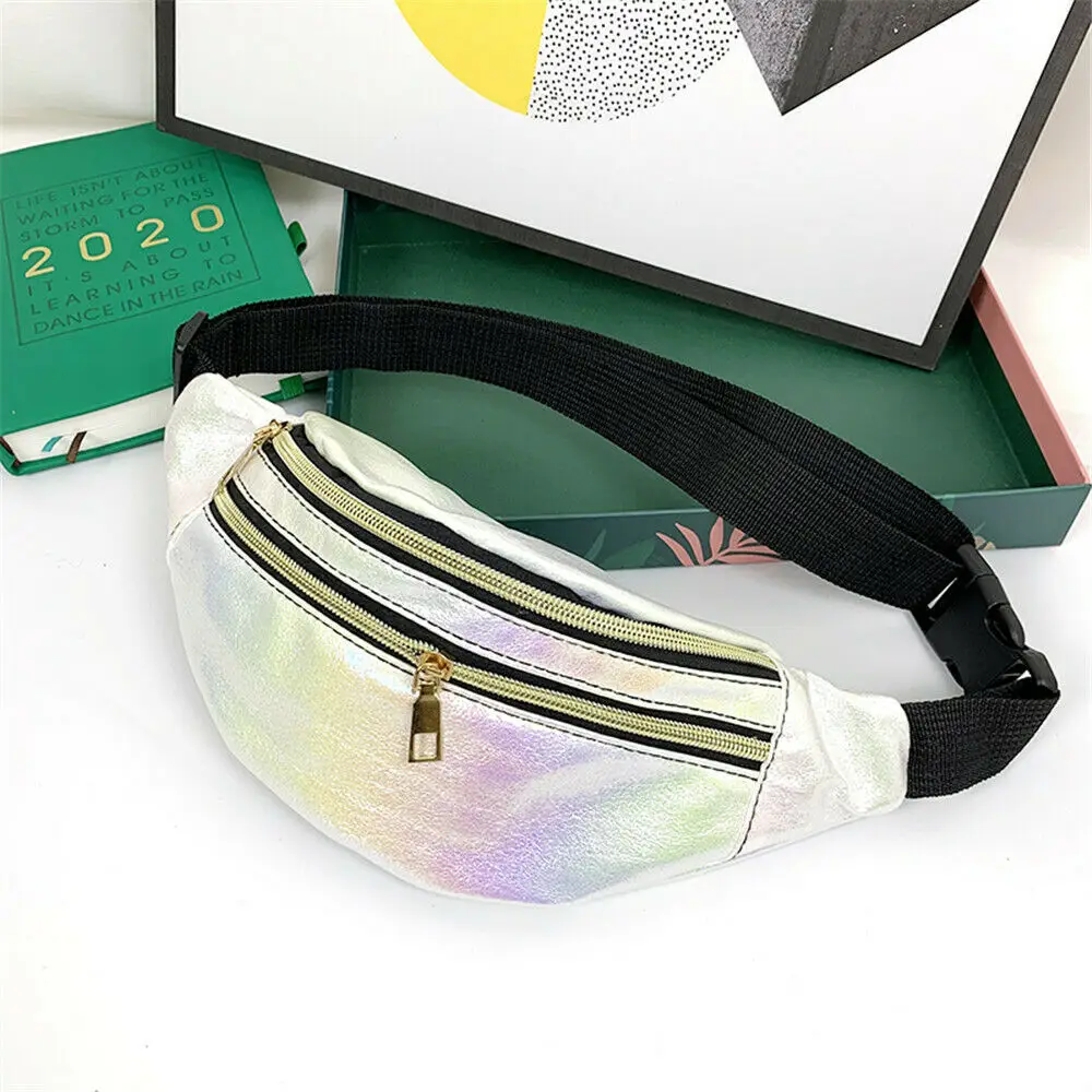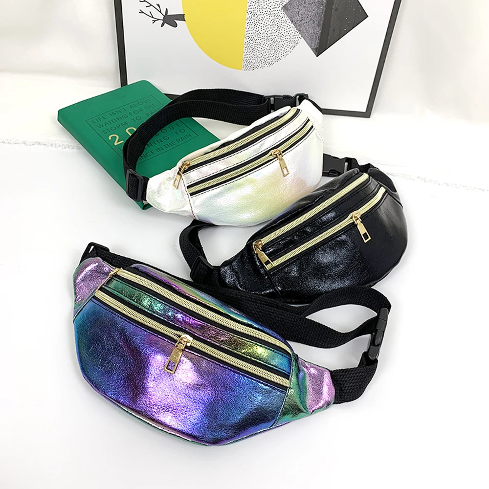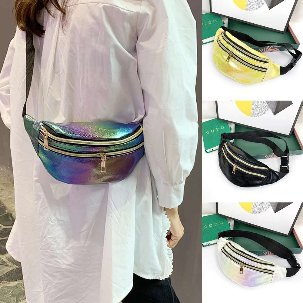 Женская поясная сумка, лазерная поясная сумка для бега, сумка на молнии, дорожная сумка для отдыха, голографические карманы, Женская нагрудная сумка