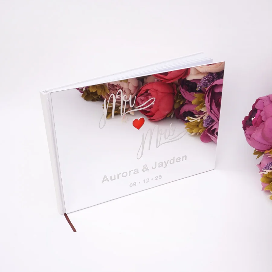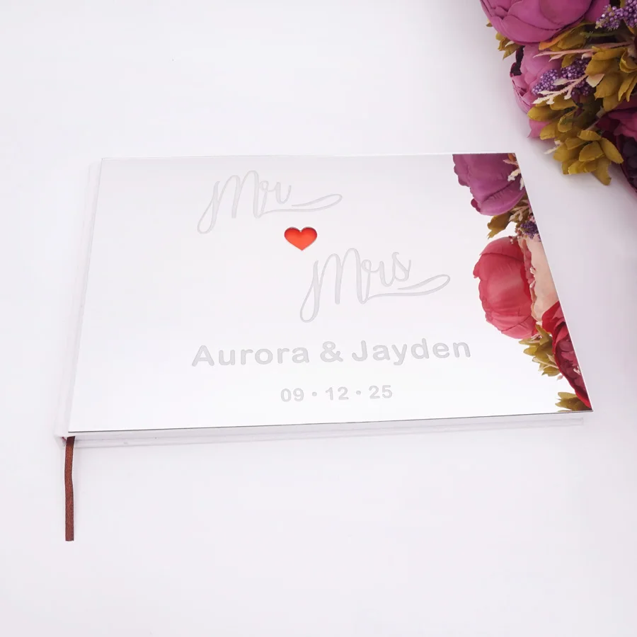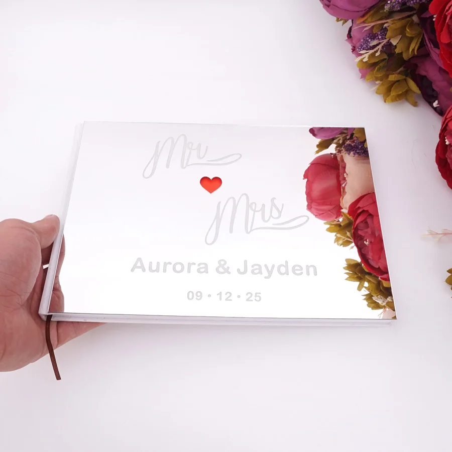 Персонализированные пользовательские Выгравированные имя и Дата милое красное сердце свадьба Фирменная Гостевая книга акриловые зеркальные вечерние сувениры