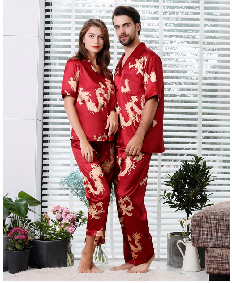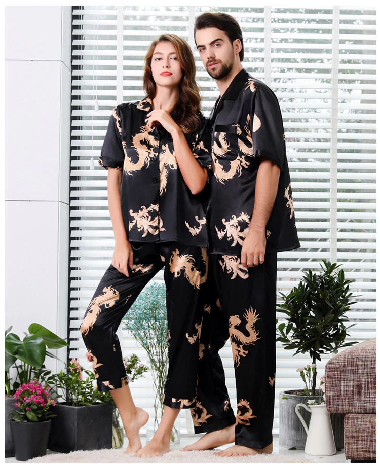 Пижама Мужская атласная из двух предметов с принтом дракона