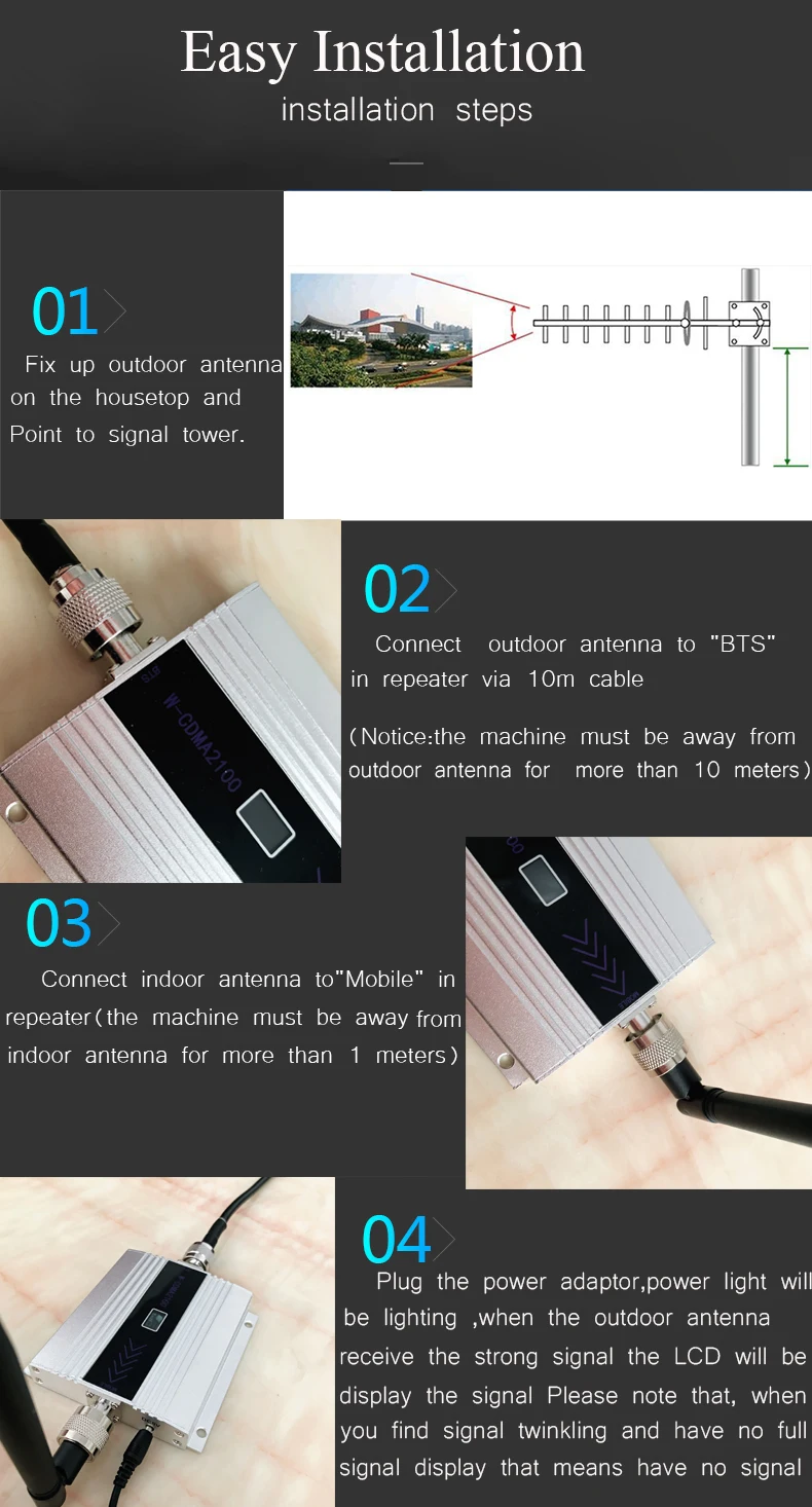 Усилитель работает, покупал для усиления сигнала в подвальном помещении. Сделан аккуратно и качественно. Заказывал с российского склада, но там товар закончился и продавец отправил его из Китая, компенсировал задержку кабелем 15 метров вместо 10метров- это ОК! А вот с упаковкой- беда. Коробка приехала сильно помятая, детали усилителя в коробке болтались ни чем не переложенные и не закрепленные. Считаю, повезло, что все работает. Продавцу надо этот момент доработать!