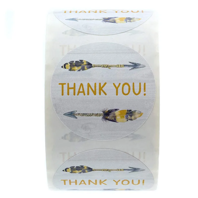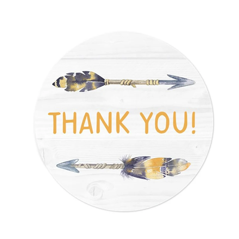 Богемные наклейки со стрелками и благодарностью, круглые этикетки с уплотнением 1 дюйм, Скрапбукинг для упаковки тортов, 500 шт. в рулоне, канцелярские наклейки