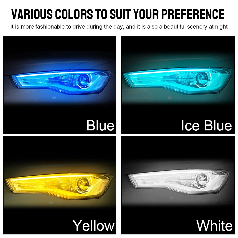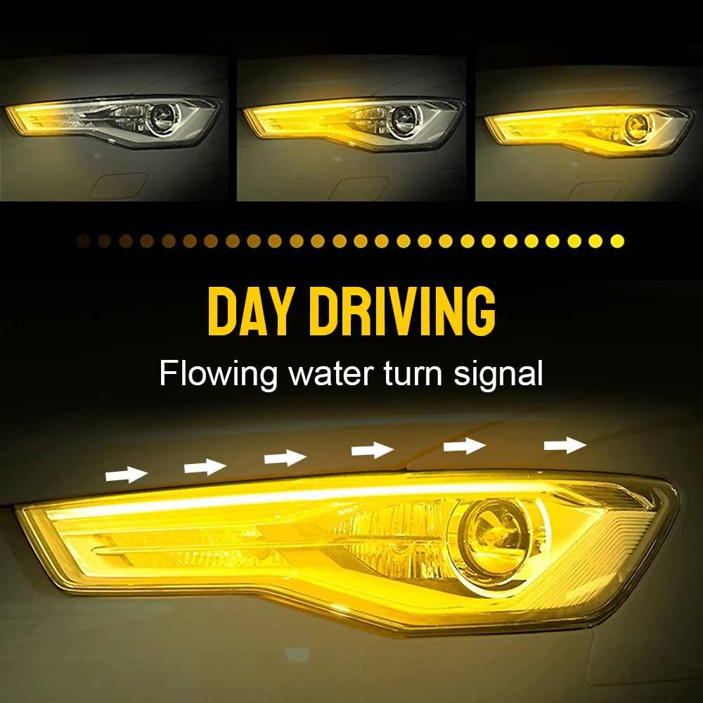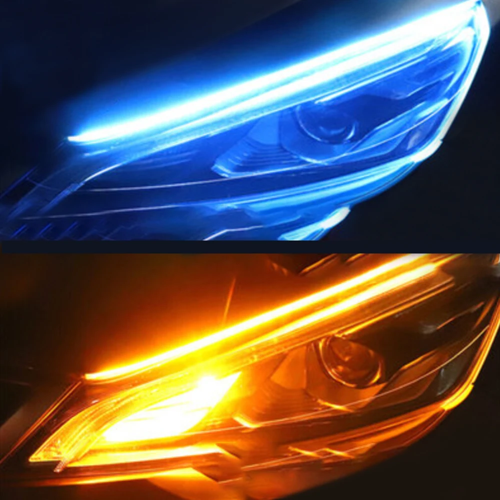 Автомобильная светодиодная лента LEEPEE для дневных ходовых огней, 12 В, 304560 см светильник белый сигнал поворота, желтая гибкая трубка