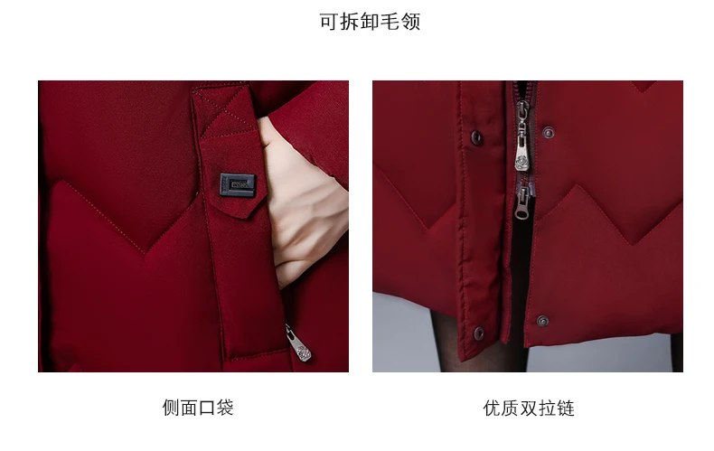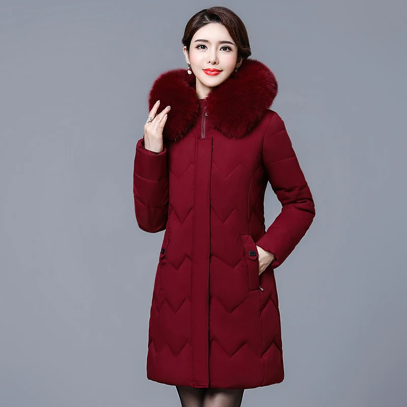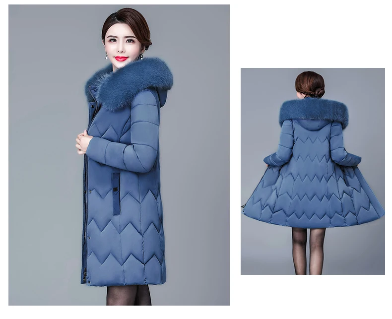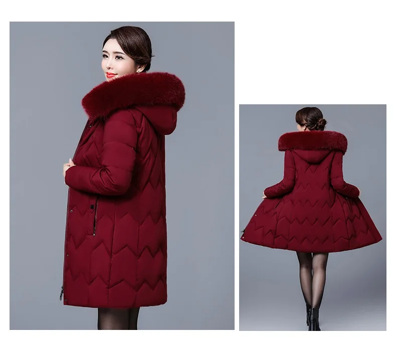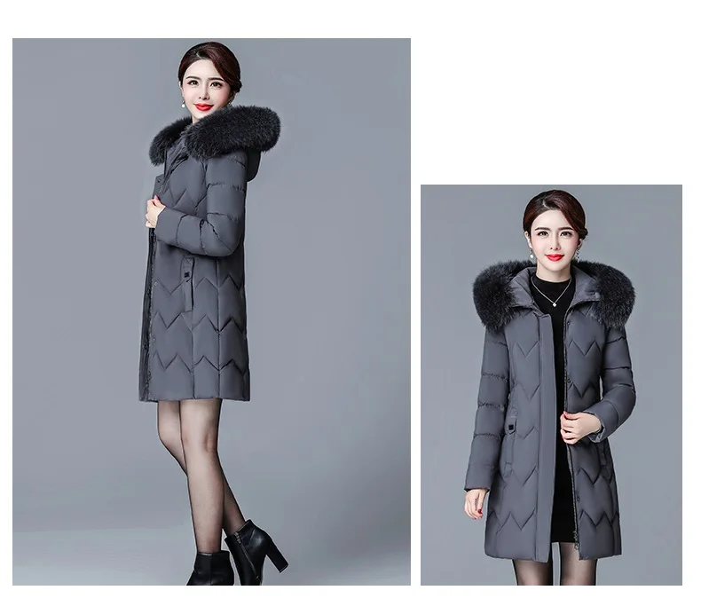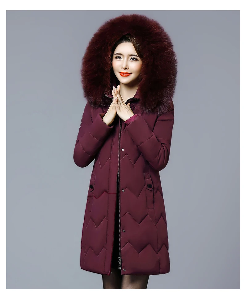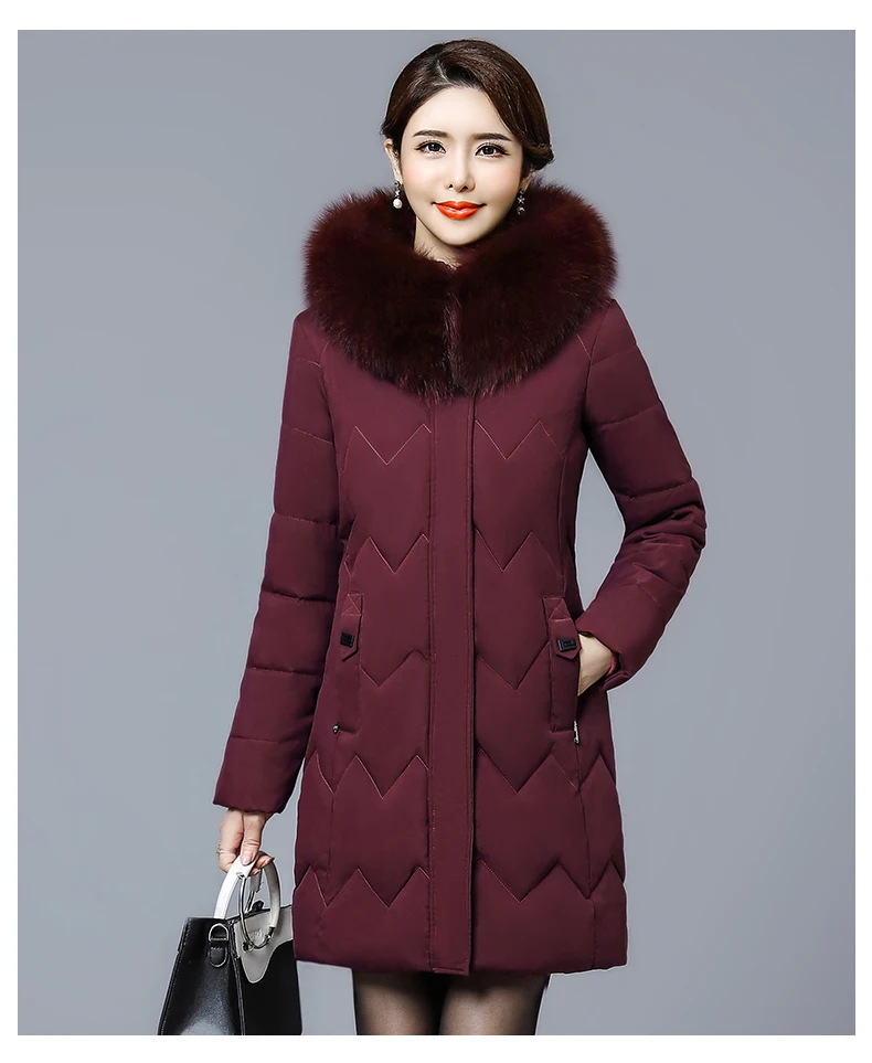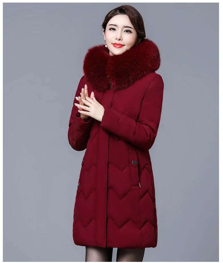 Пуховое пальто для женщин среднего возраста, длинное зимнее пальто с меховым воротником