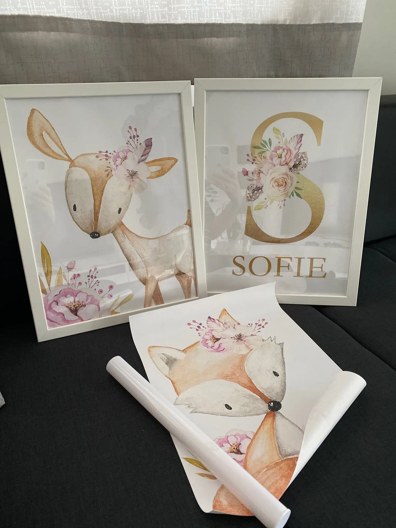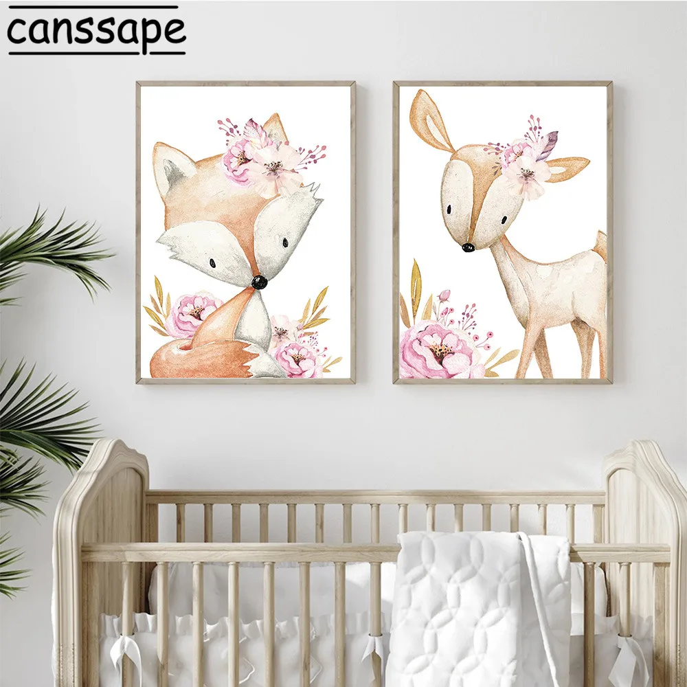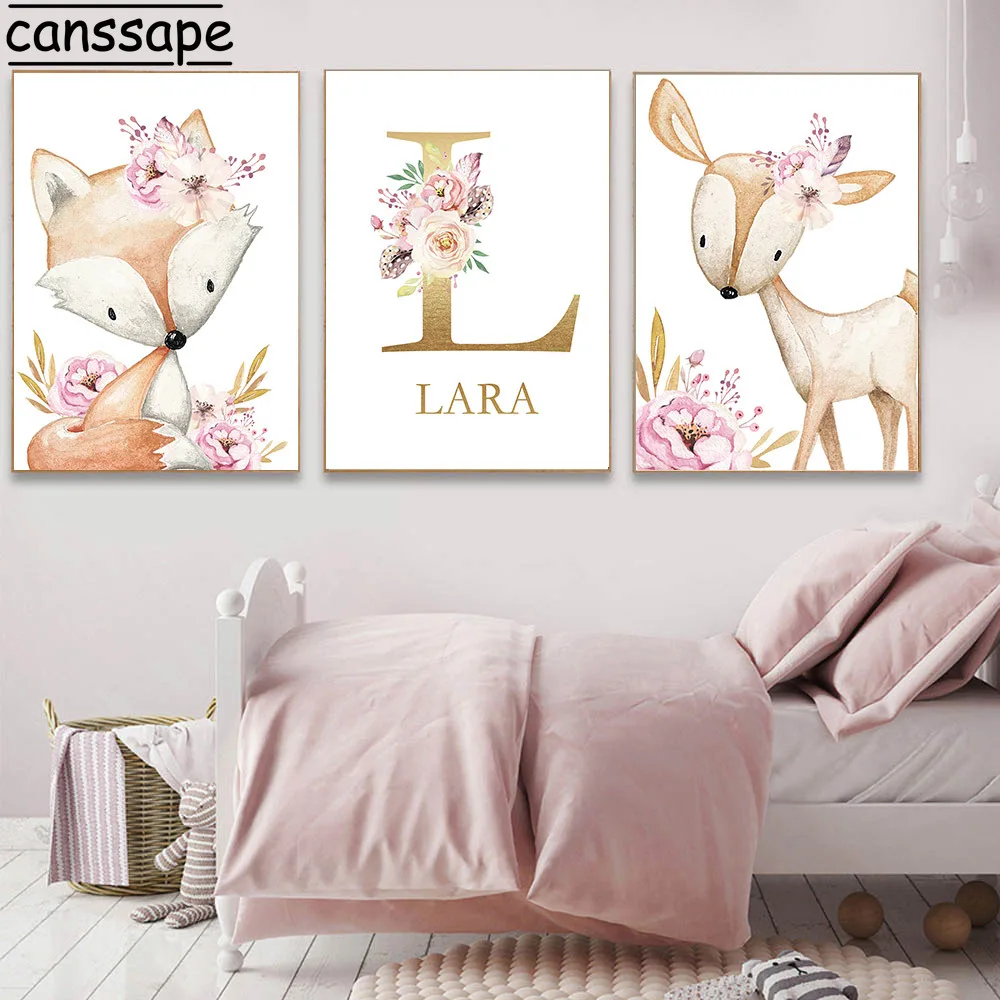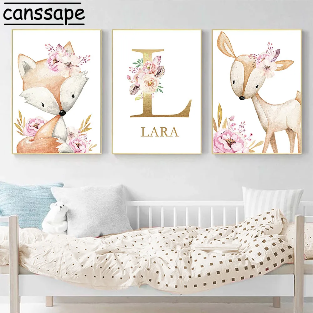 Постер с изображением лесных животных, Картина на холсте для детской, настенные постеры с именем на заказ, картины на стену в скандинавском стиле для украшения спальни девочки