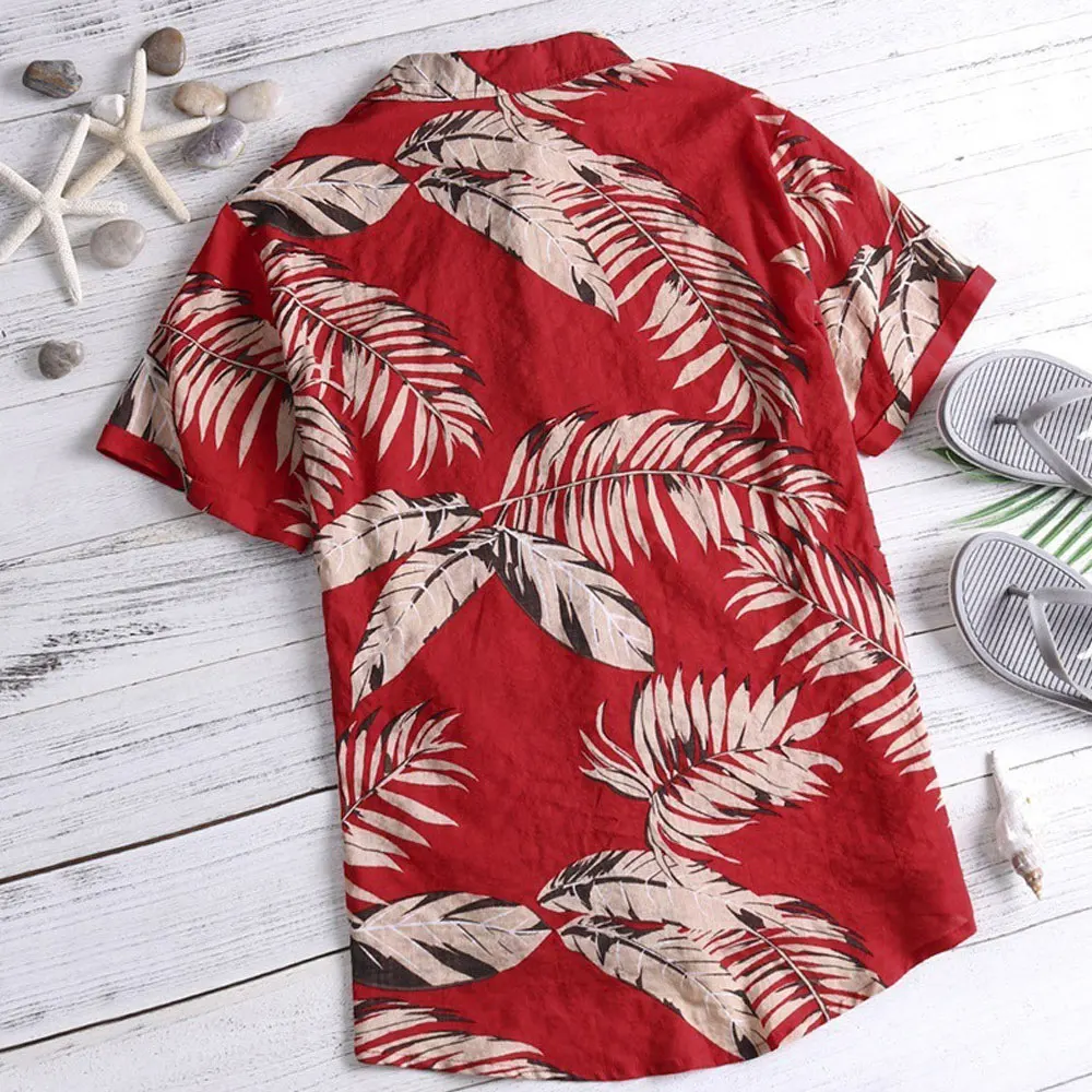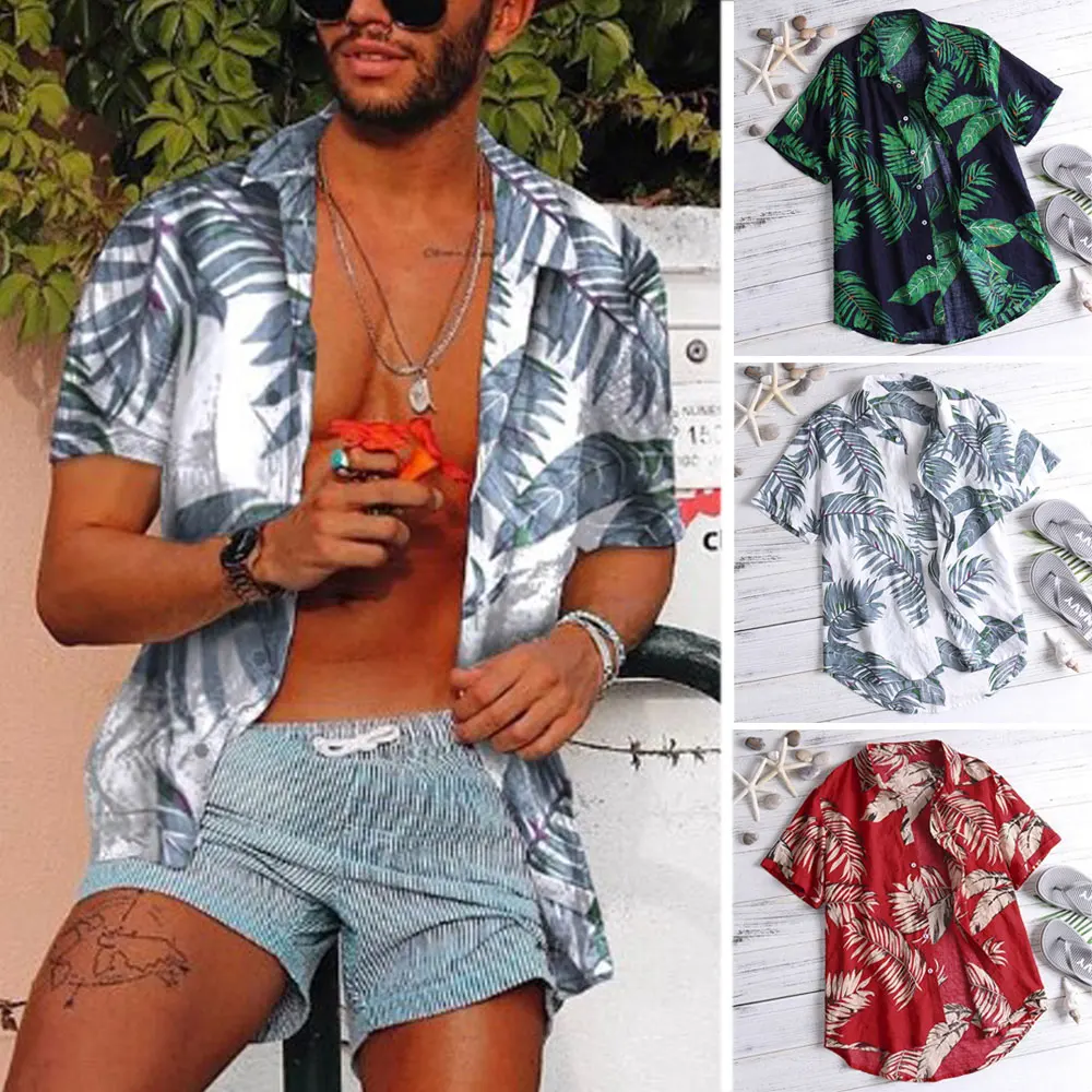 Гавайская Мужская рубашка с коротким рукавом и принтом, Повседневная рубашка, Мужская Летняя Повседневная Свободная пляжная одежда, мужская блузка на пуговицах, топы