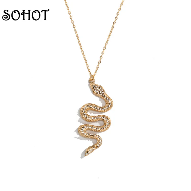 Женский кулон в форме змеи SOHOT, ювелирный набор золотистого цвета...