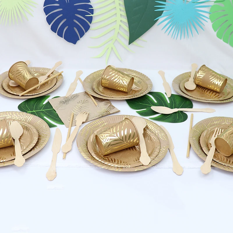 Золотая фольга одноразовая салфетка для посуды тропические Пальмовые Листья бумажные тарелки чашки, ребенок, душ для детей девочек и мальчиков